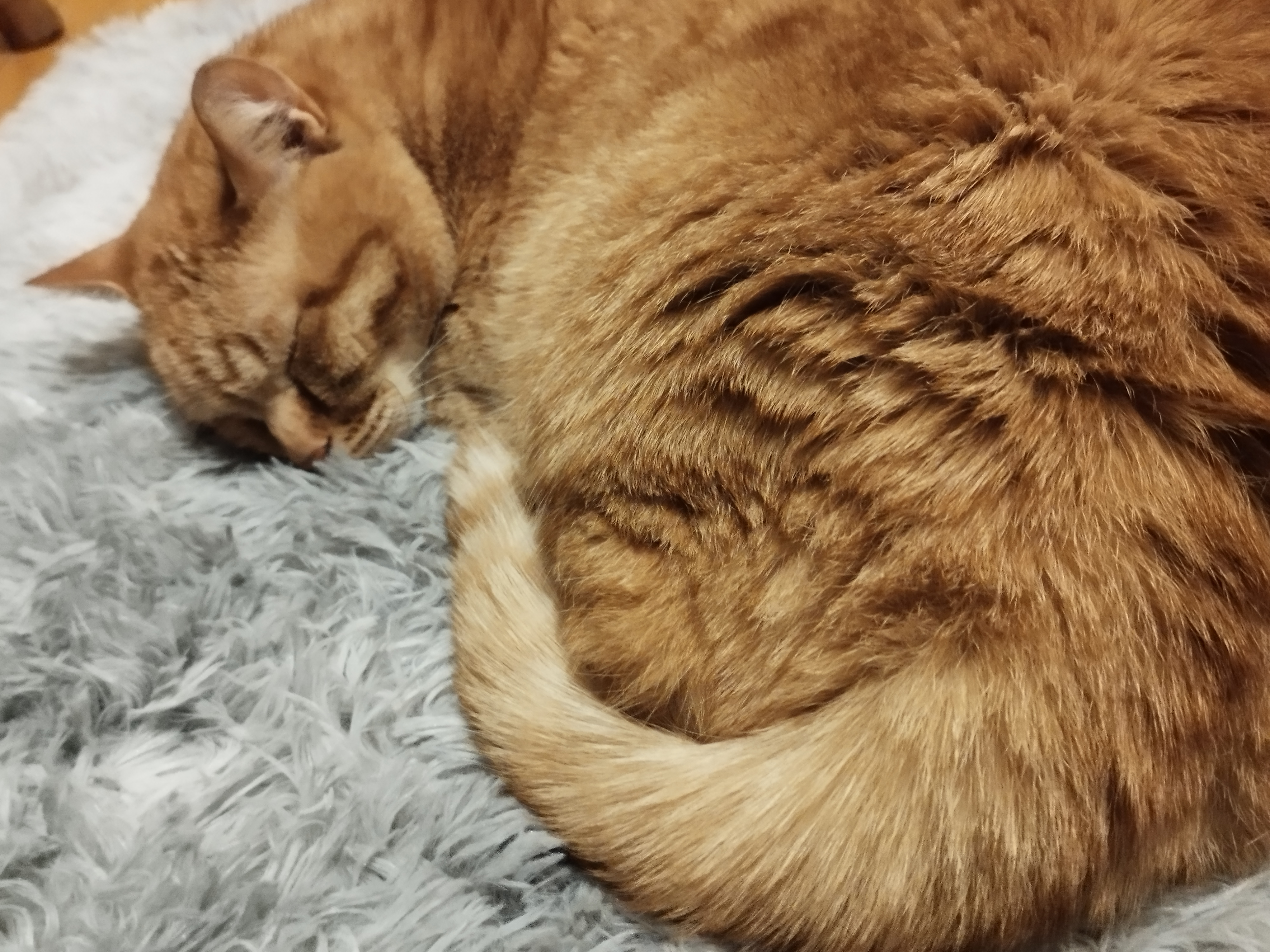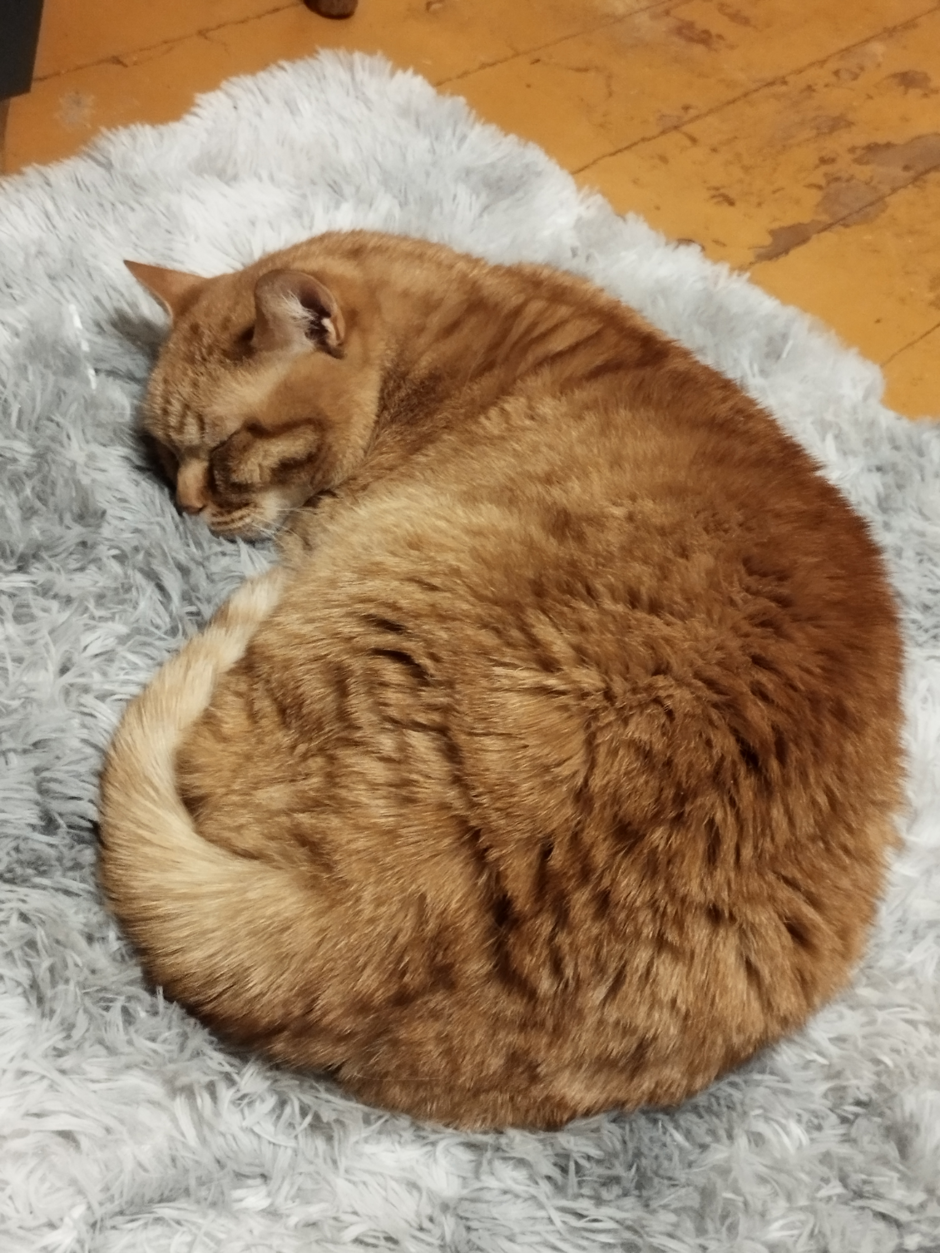 До этого он спал на стуле где был мой мягкий кингуруми,но я его положила в стирку. Из за этого он перебрался на мягкий коврик.