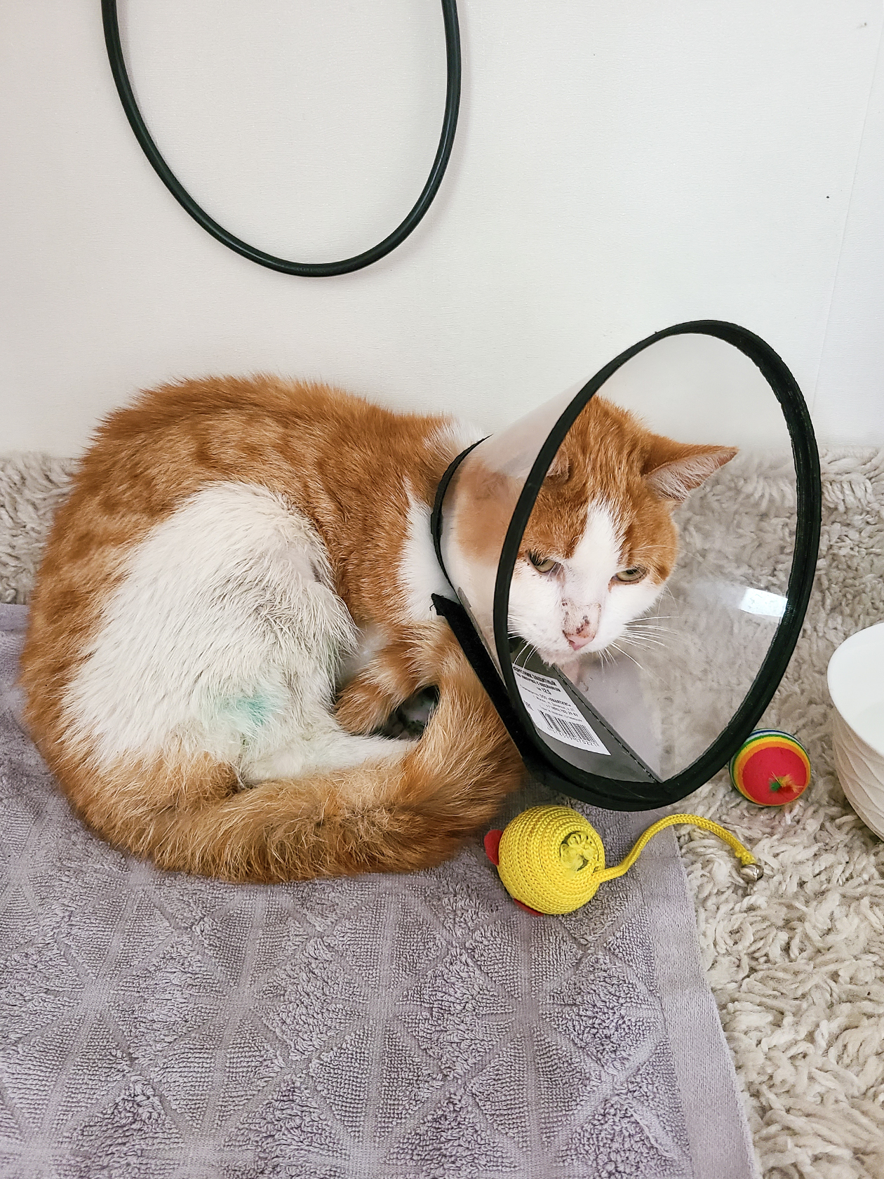 Увидели Персика уже после возвращения. До этого момента мы не знали, что коту удалили всю заднюю лапу, ожидали, что хоть какая-то часть останется, но увы. Для нас это стало шоком.