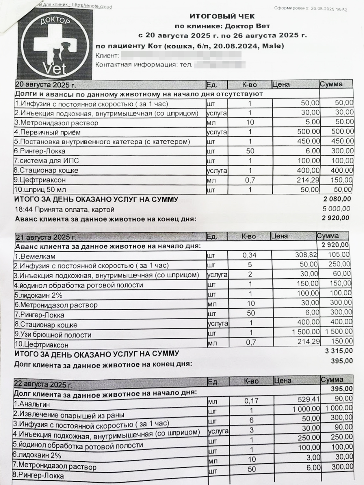 Мы оставили Персика в стационаре клиники. Мама подписала с ними договор и обменялась контактами. Почти каждый день ей звонили и рассказывали, какие манипуляции совершены, спрашивали одобрение и сообщали стоимость.
