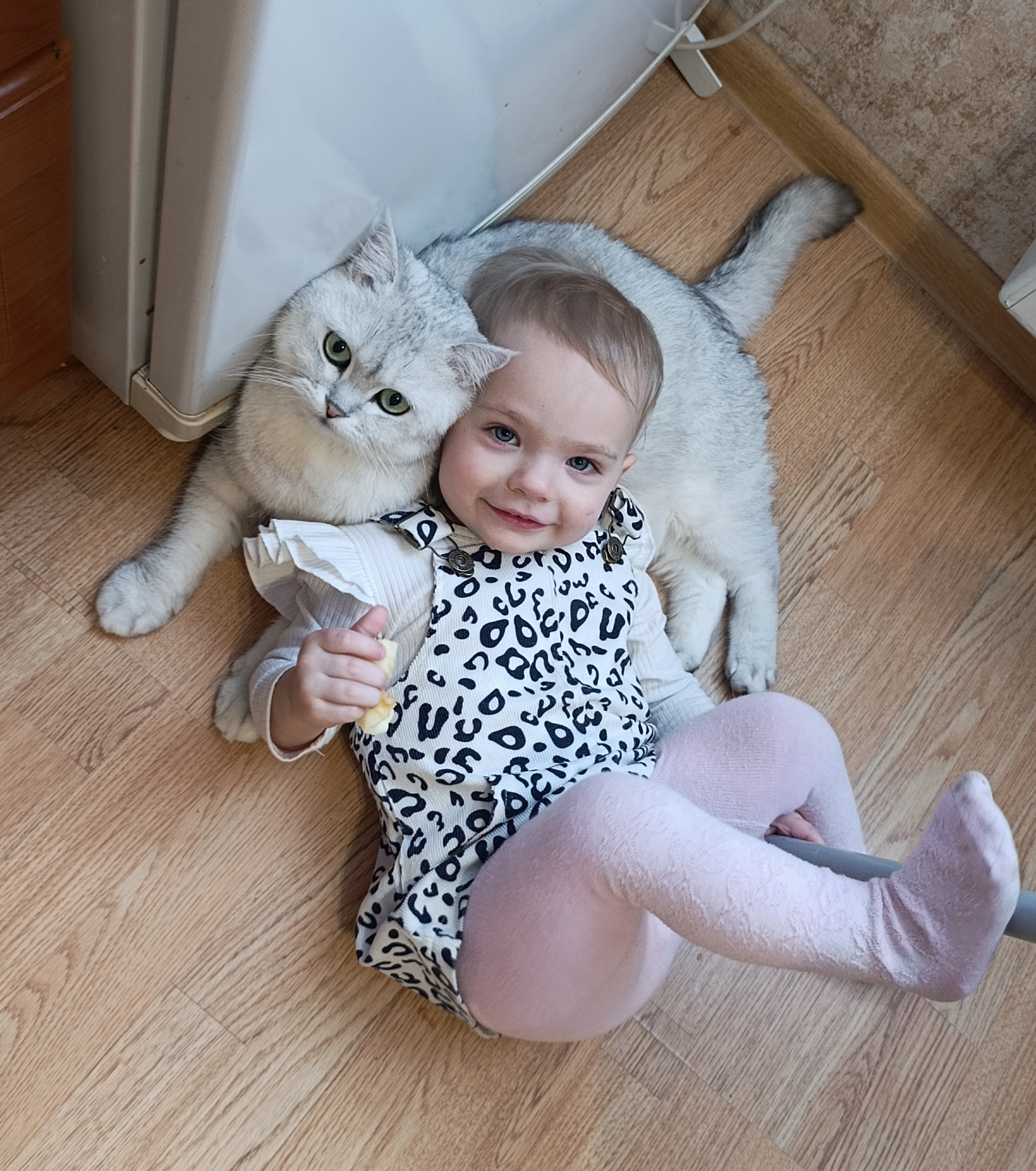 День моей младшей Лидии (1 год и 8 месяцев) начинается одинаково. Она просыпается, бежит к Кузе, падает в него с головой и крепко обнимает. Утыкается носом в его пушистый бок — и замирает. Кот мурчит.