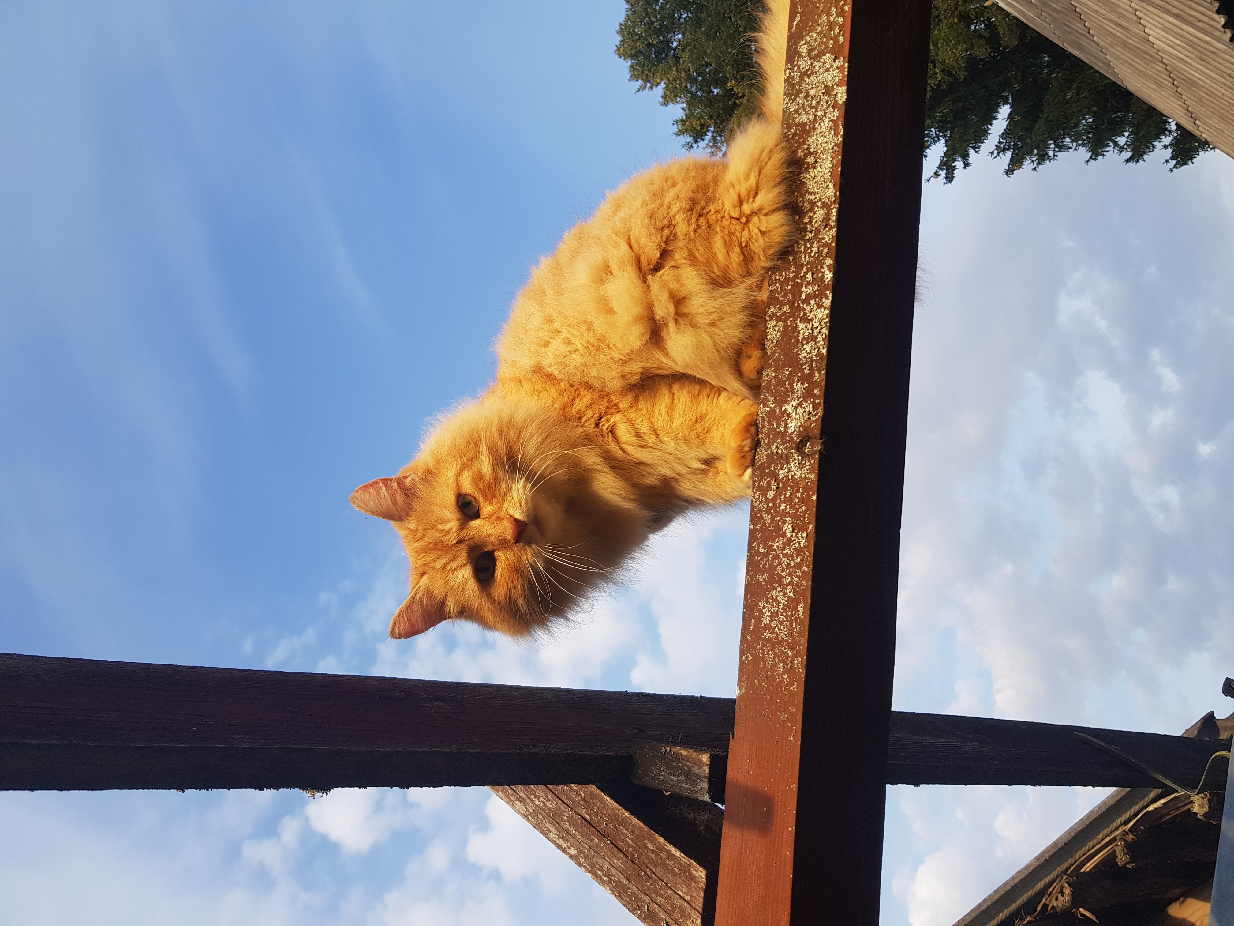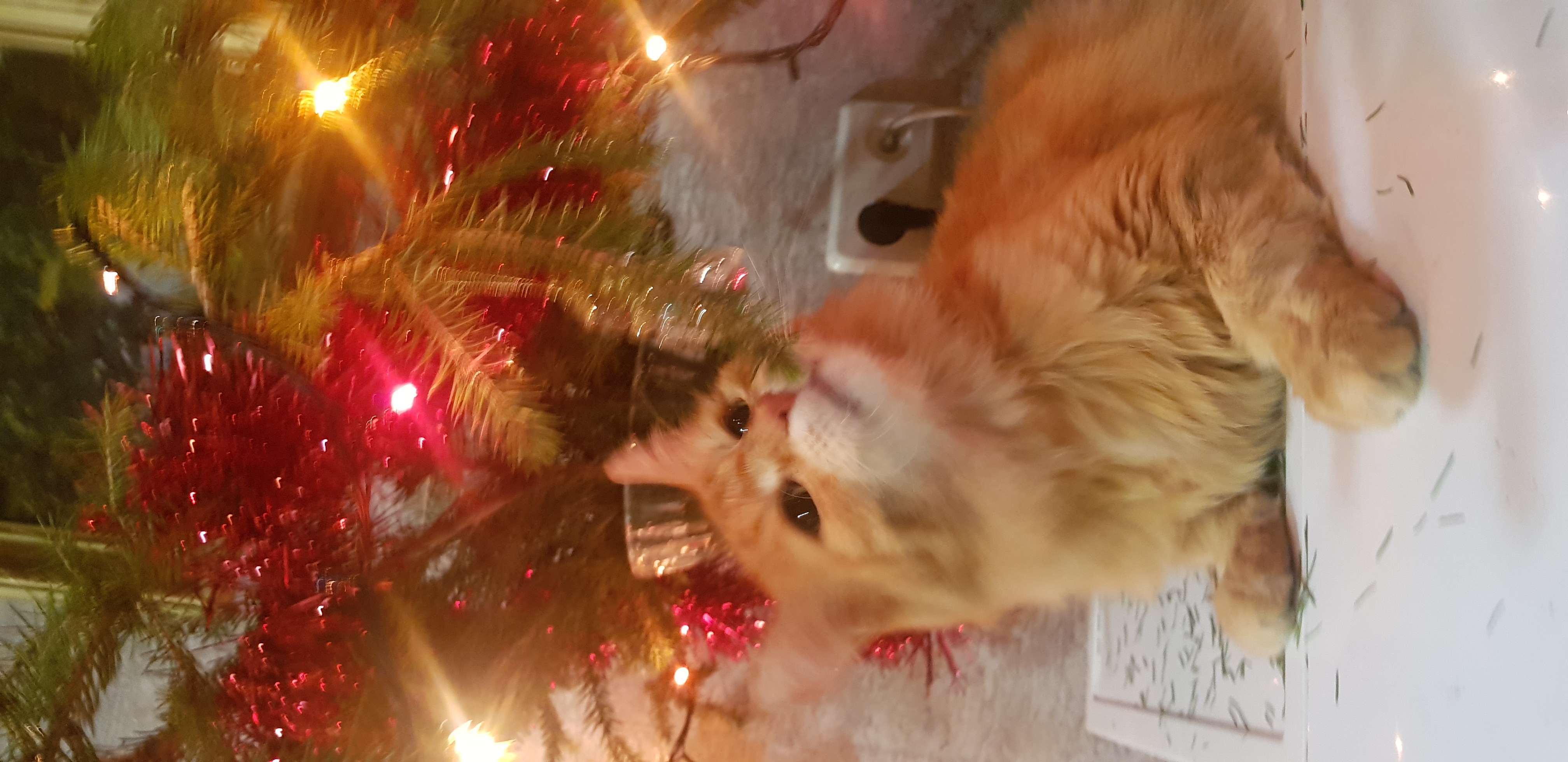 Наш умнейший кот Рыжик охраняет все 30 соток, дежурит дома у комода, а под Новыйй год следит за порядком.
