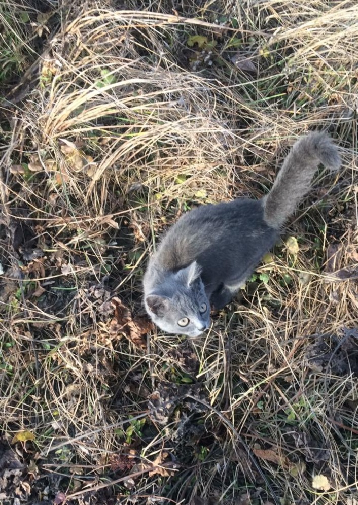 Симка вышел к нам (точнее к нашим друзьям, а мы подъехали чуть позже) прямо из травы средь чистого поля. Уже вместе с ним поехали дальше, на пикник. А на следующий день выпал снег… В общем, версий его появления несколько, одна из них — инопланетная. Управляет нами уже 5 лет.