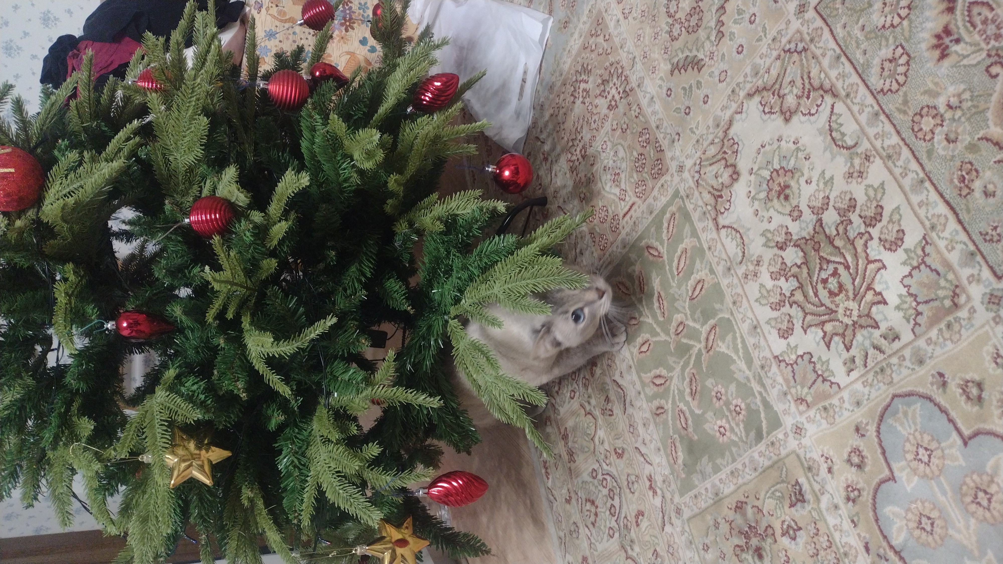 Фото питомца: кот Василий выслеживает Деда Мороза