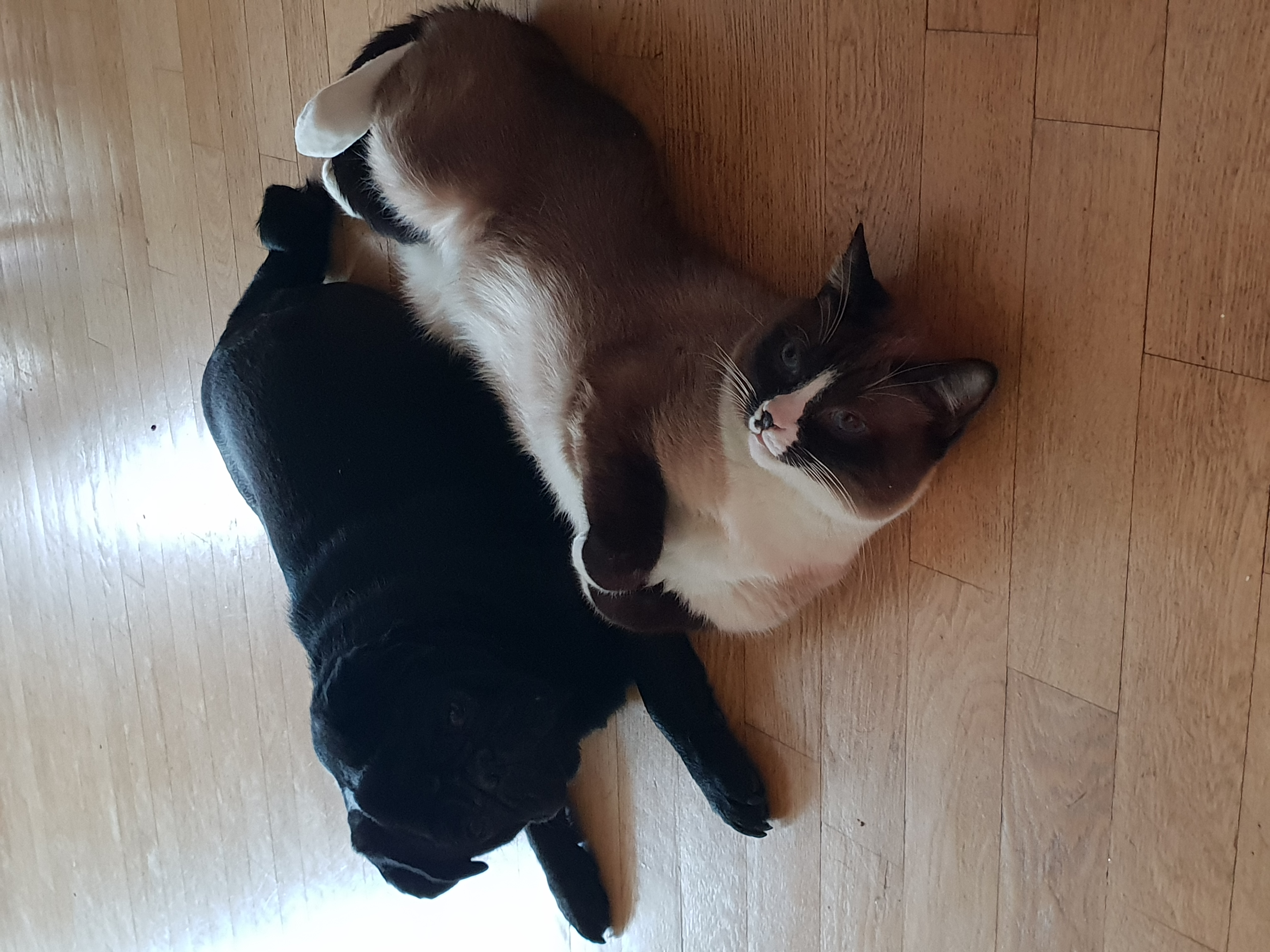 Фото питомцев: кот Виктор устал от игр с мопсом Бобсом