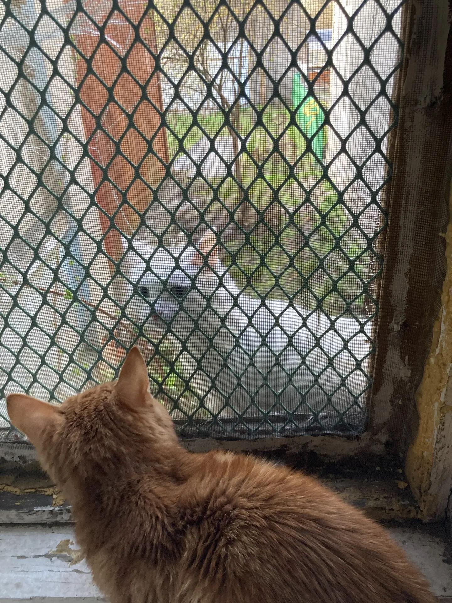Кот Жорик наблюдает за самовыгульной Белкой.