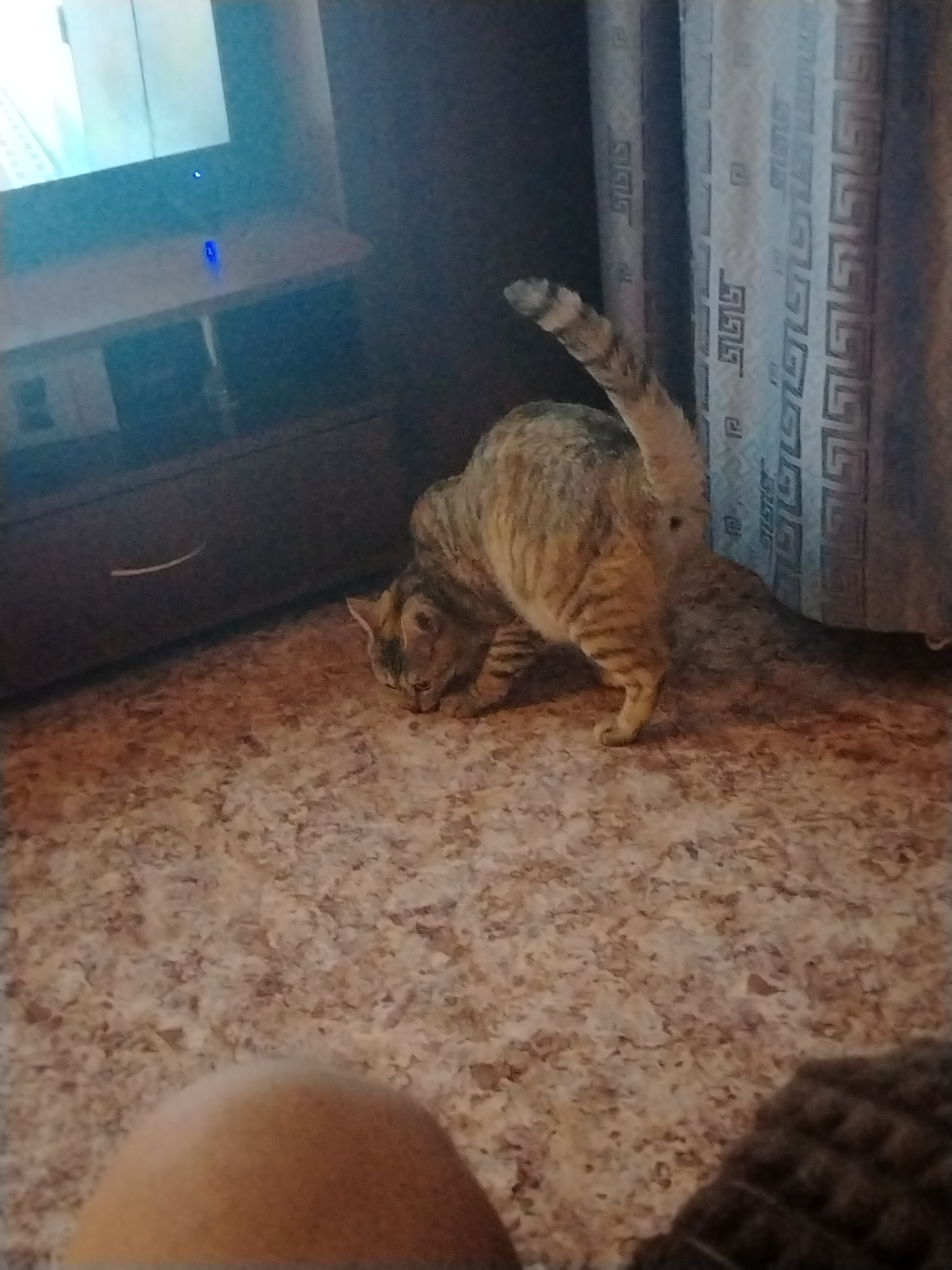 После того, как кошка обрела новый дом и новую хозяйку, жизнь поменялась. Кошечка была очень энергичная и любознательная. По мере её взросления она стала проникать во все более дальние уголки квартиры. Могла залезть по шторе до потолка, а также на верхнюю полку стенки.