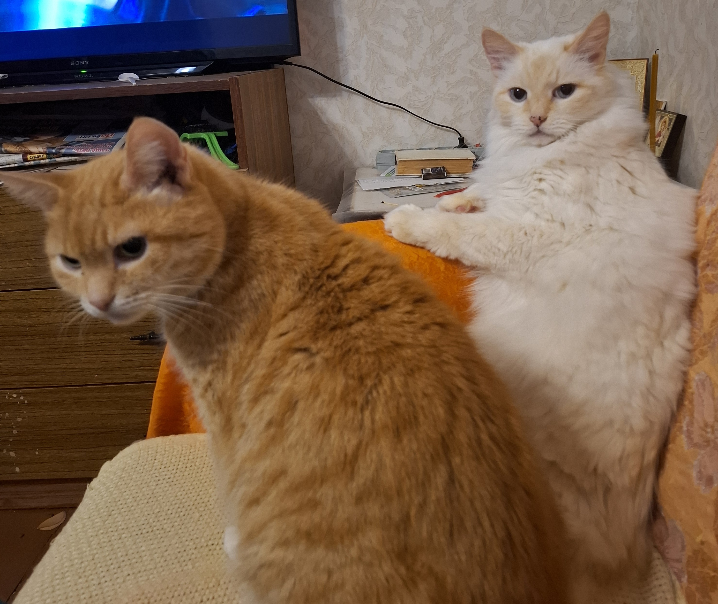 Фоня и Боня — мои котяньки забаааавные! Спали рядышком. Агафон ничего и не подозревал, как Бонька надумал — проснулся и давай кусаться. Вот такой момент — Фоня заверещал, в уголок вжался и смотрит на братца с таким выражением "Ты дурак, что-ли!" Бонька у нас ревнивец и хулиган😊