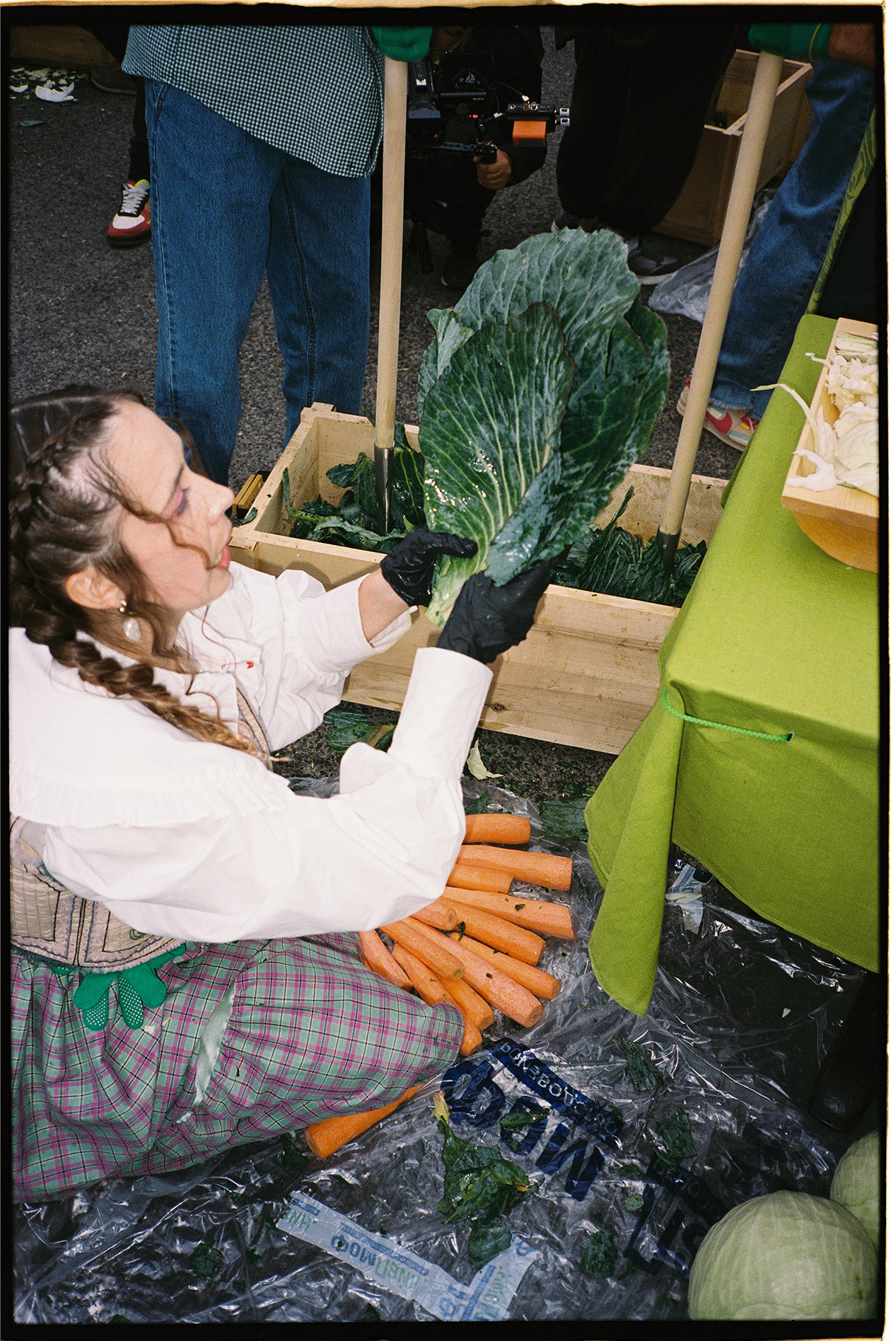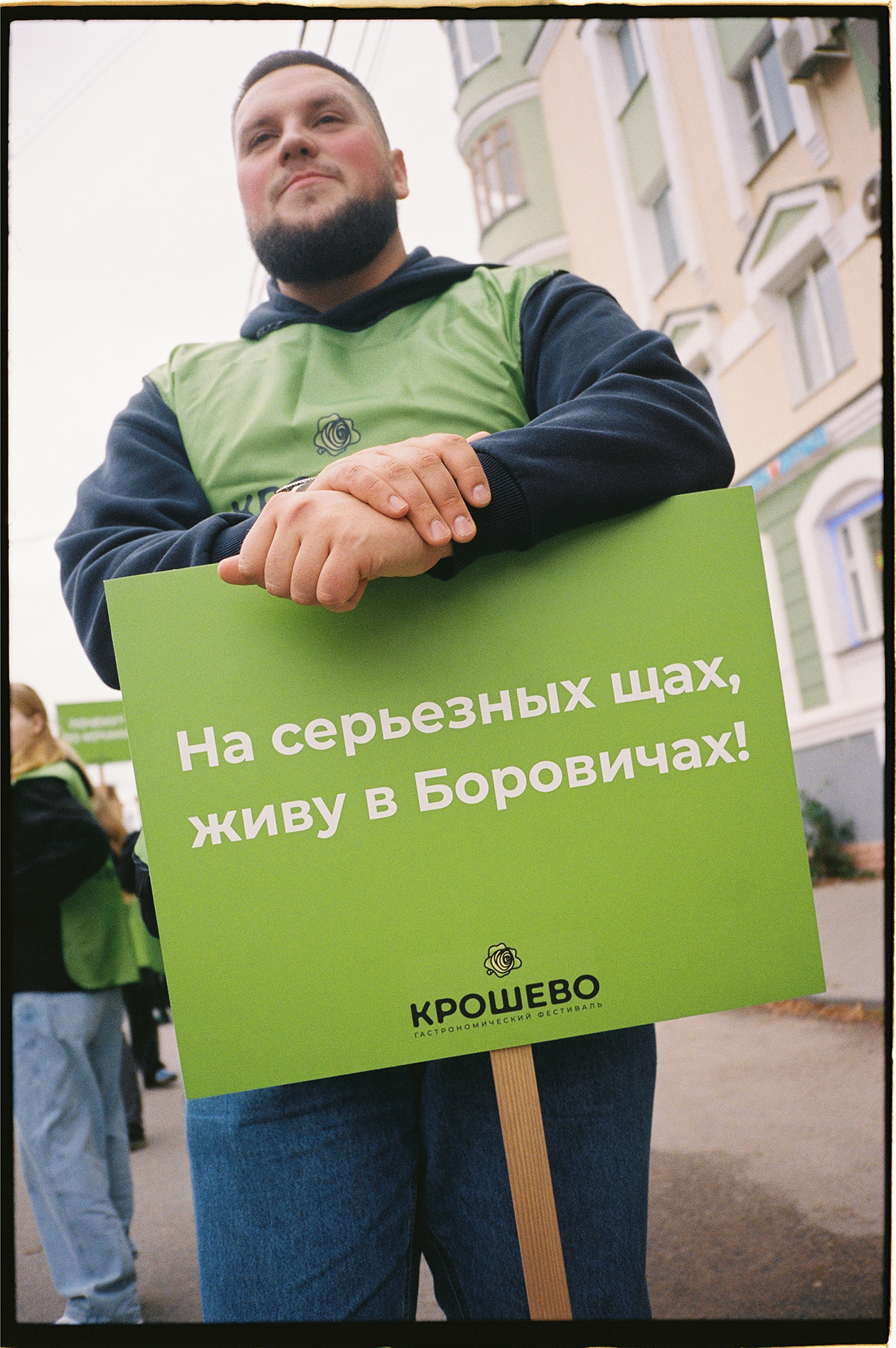 Процессия напоминала мини-версию бразильского карнавала в альтернативной боровичской вселенной. Артисты активно размахивали лентами, из колонок на всю громкость играли «Тату» и Эльдар Джарахов, участники раскидывали капустные листья как лепестки роз, а прохожие тянули руки за бесплатными кочанами из прицепа. Параллельно ведущий энергично призывал окружающих повторять за ним клятву фестиваля и обещать, что сегодня все будут веселиться и крошить капусту.
