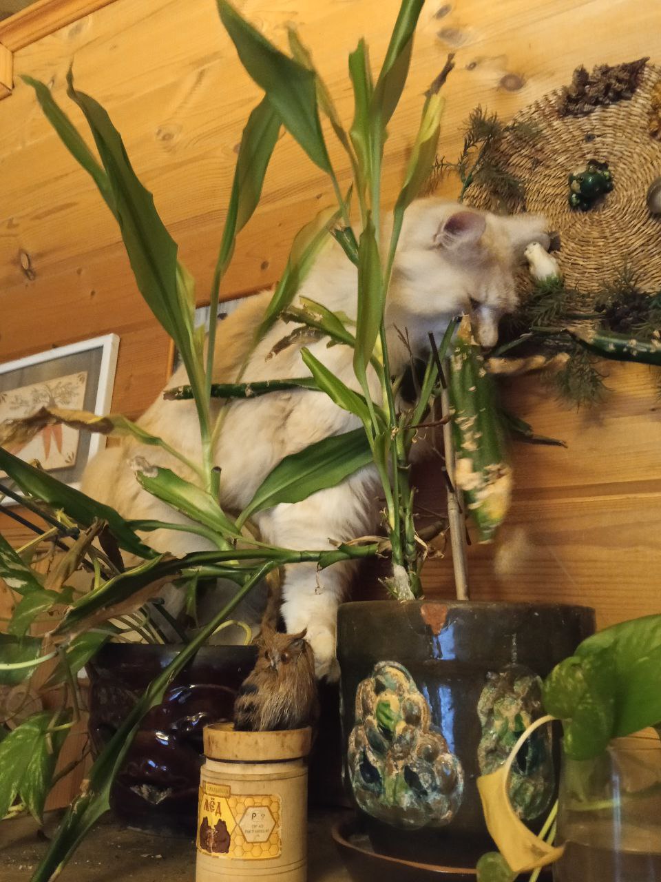 Бароша обследовал игрушку, а потом понял, что тут можно ещё и салатиком полакомиться.