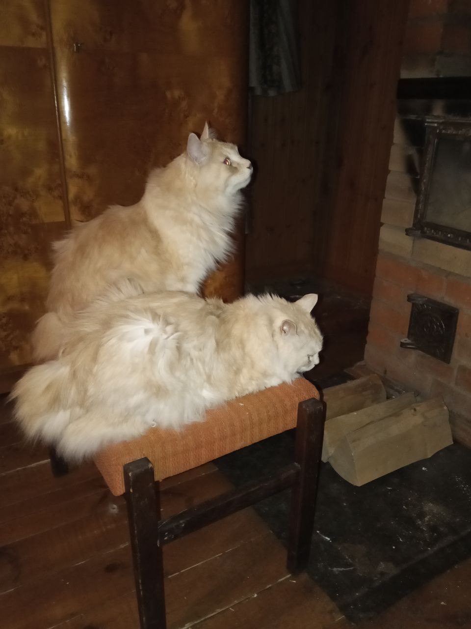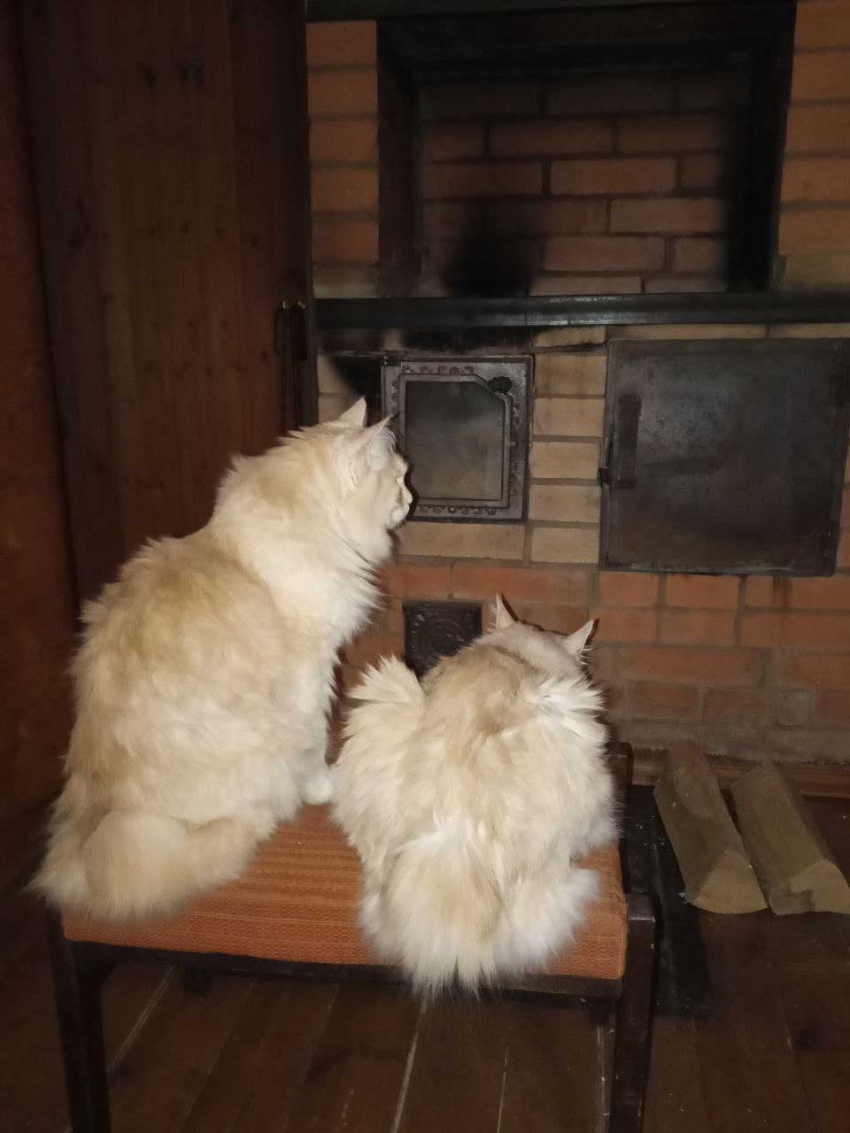 Фото питомцев: курильские бобтейлы Барон и Батон устроились около теплой печки
