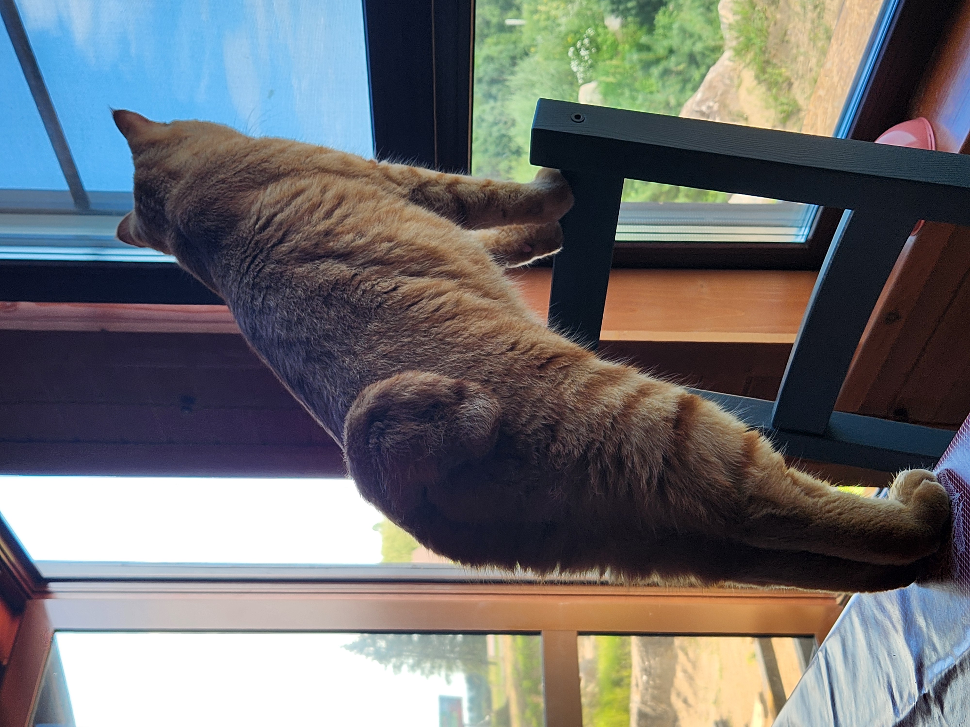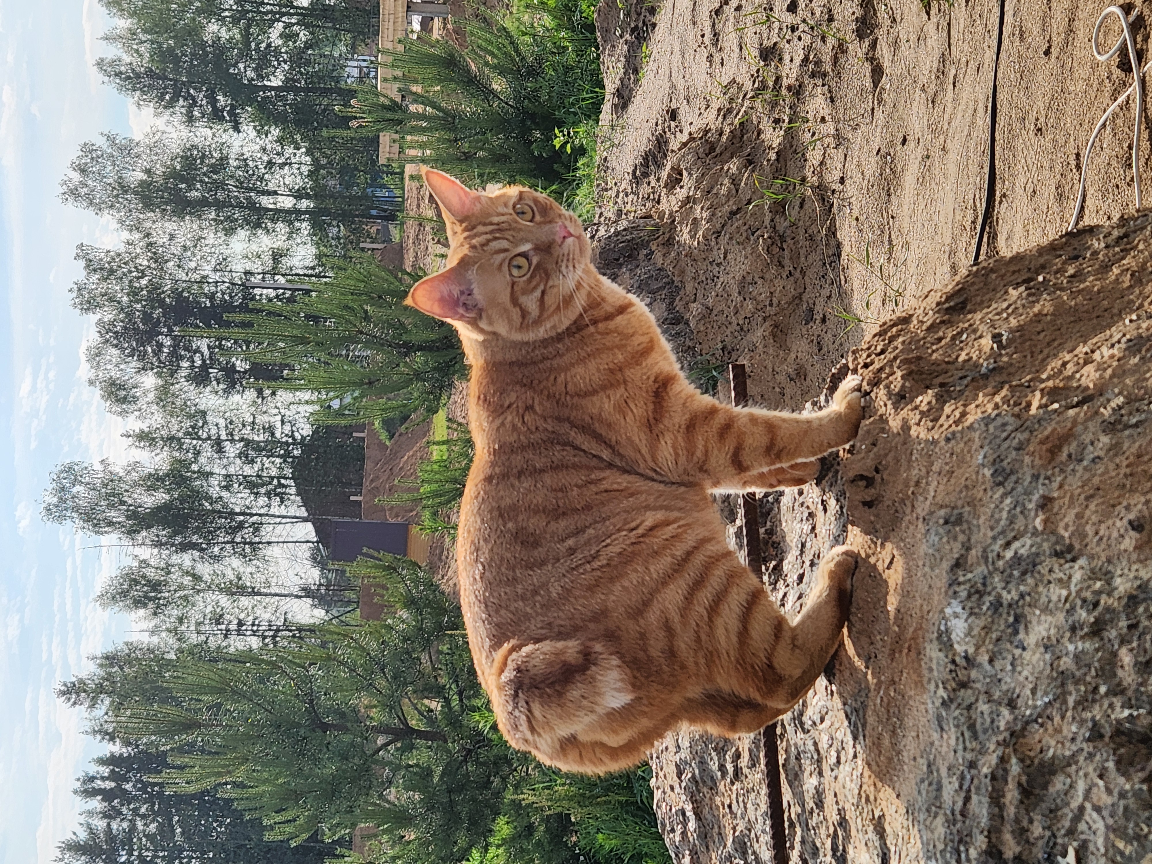 Когда Боня приезжает в дом в деревне сначала осматривает территорию. Потом он выходит в " поле" на целый день: забирается на камни, охотится на птичек и спит в тенечке на песке.