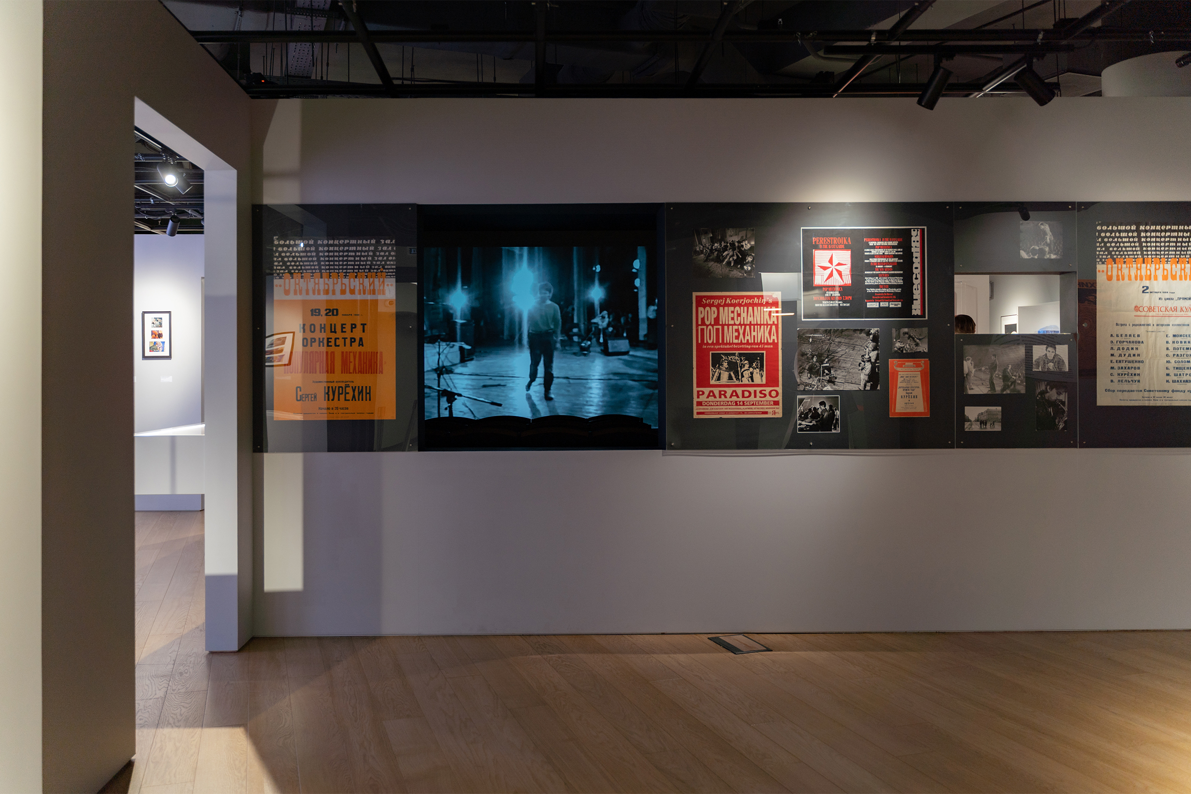 Переходя из зала в зал, посетители путешествуют по точкам притяжения творческой молодежи. Первая локация — БКЗ «Октябрьский», где репетировала и выступала «Поп-механика».