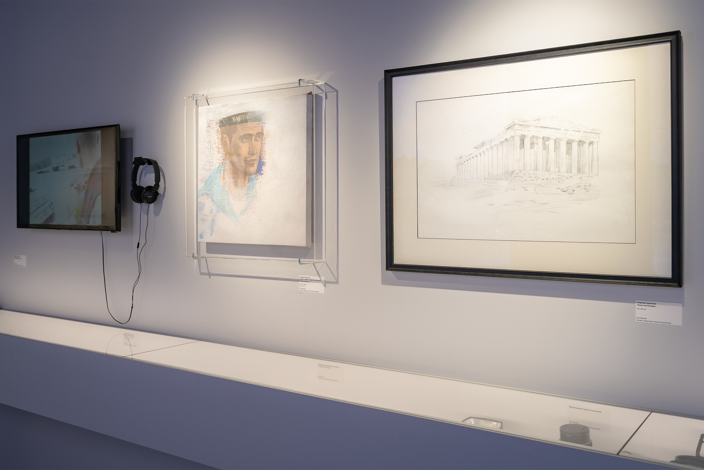 На выставке кроме личных вещей Гурьянова представлен эскиз, посвященный Балтийскому флоту — теме, к которой художник неоднократно обращался в своих работах.