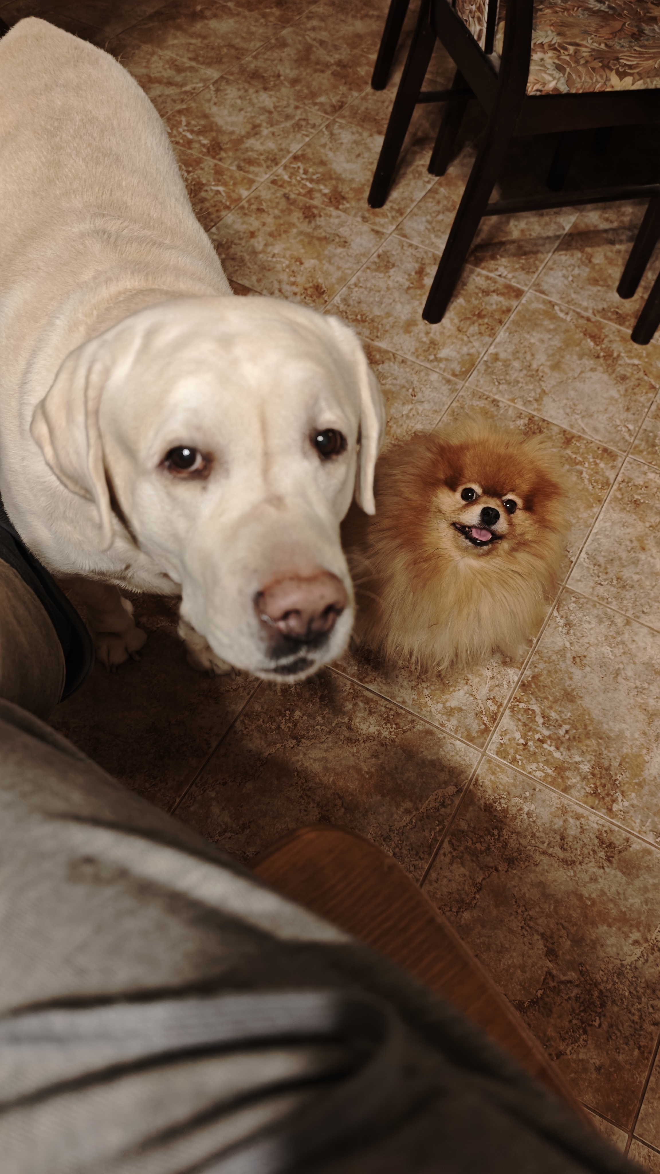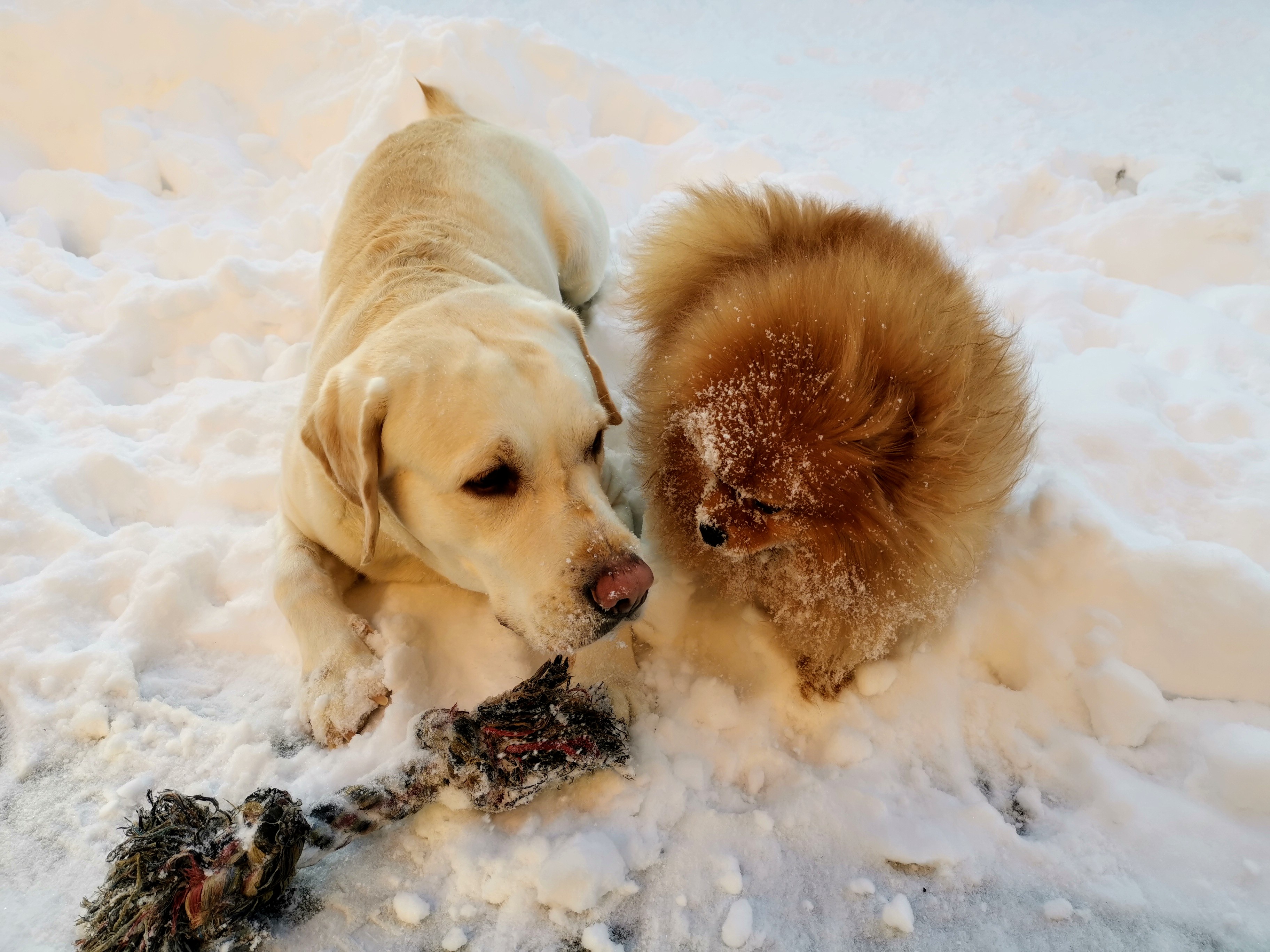 Фото питомцев: лабрадор Фидель и шпиц Марсель проводят время вместе