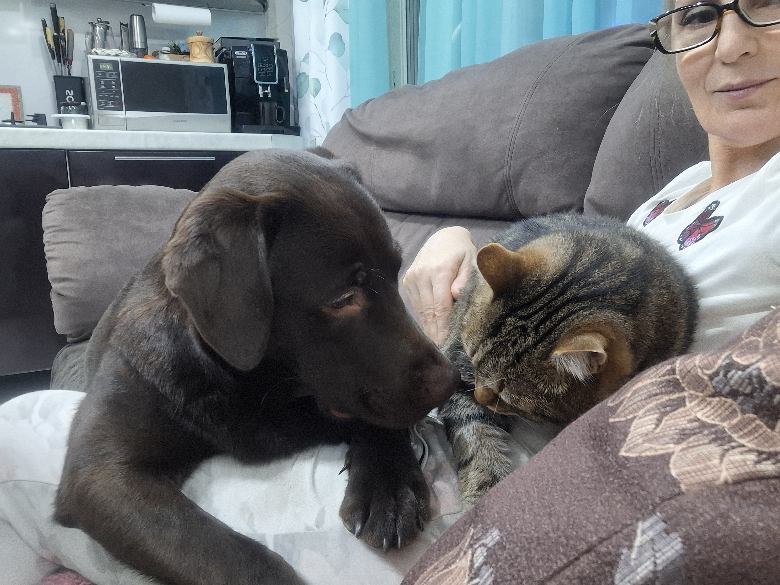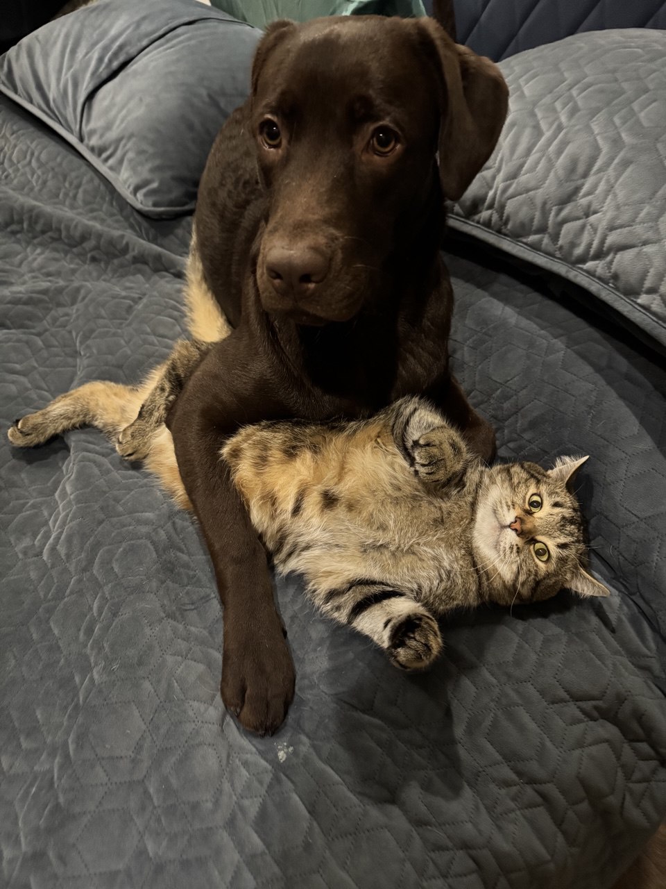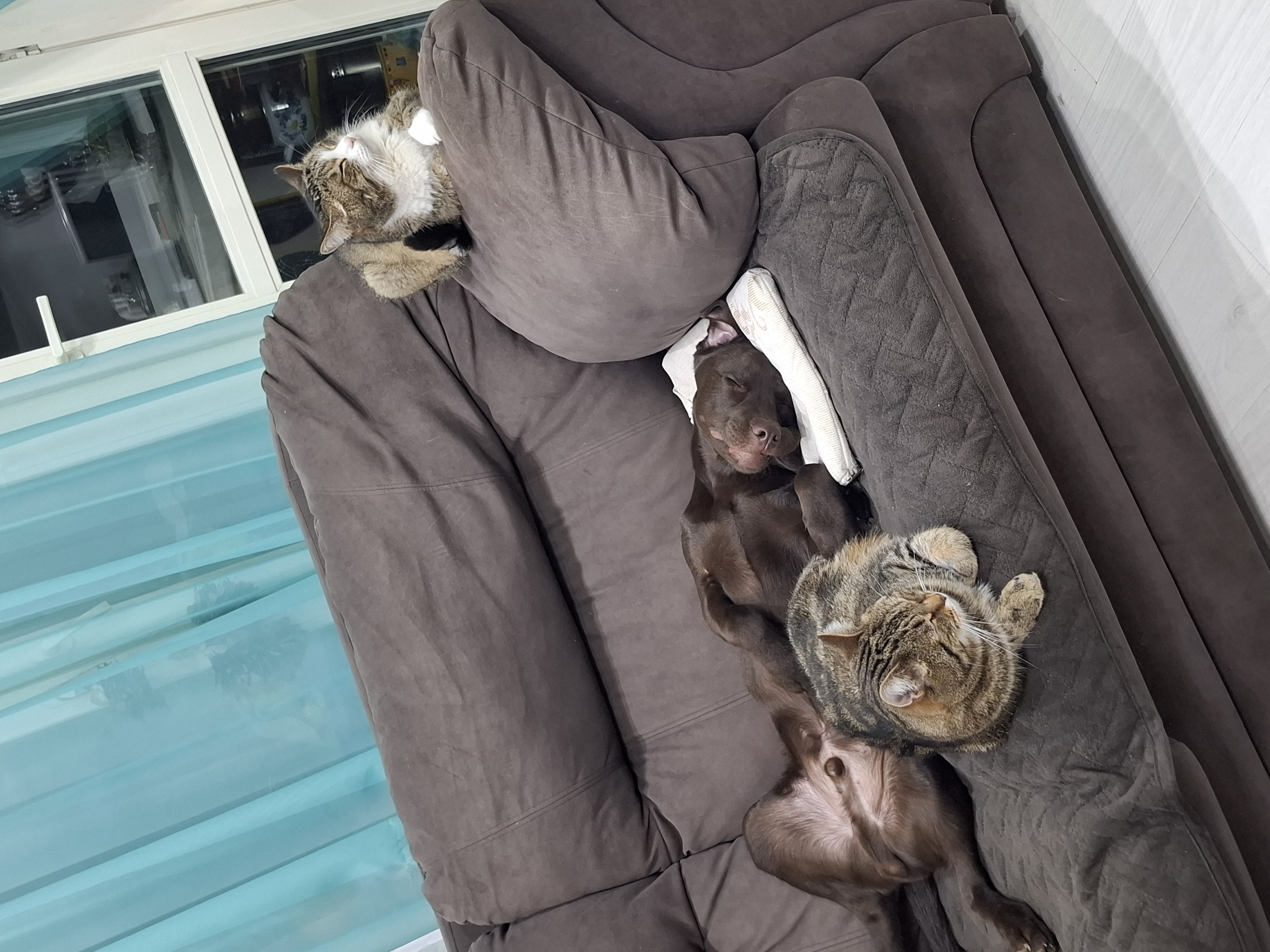 Фото питомцев: лабрадор Талисман и коты Василий и Сэм дружно отдыхают