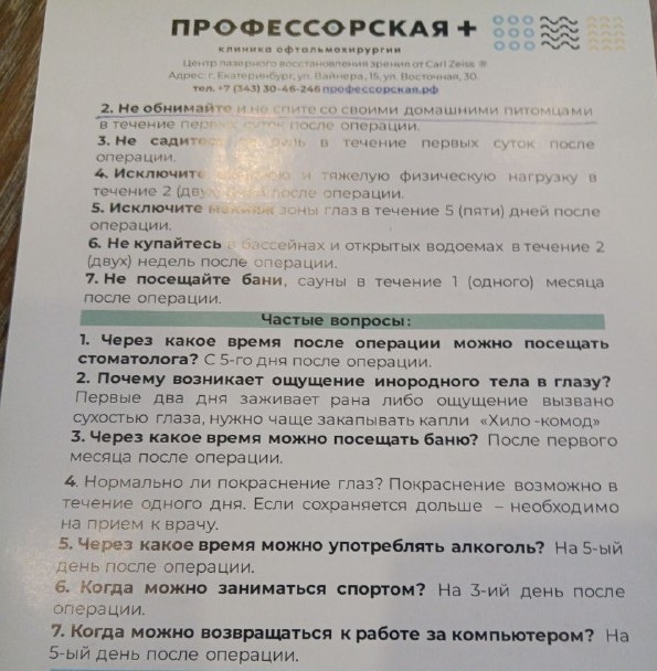 В целом, вся операция на оба глаза заняла минут 10, наверное. А в целом в клинике в тот день я провела около 2 часов.