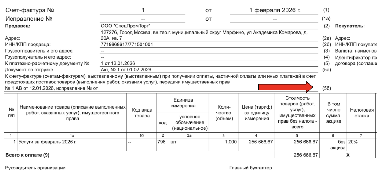 А что если не соблюдать новые требования? С 1 января 2026 года отсутствие в счете-фактуре строки 5б будет считаться нарушением требований п. 5 ст. 169 НК РФ.