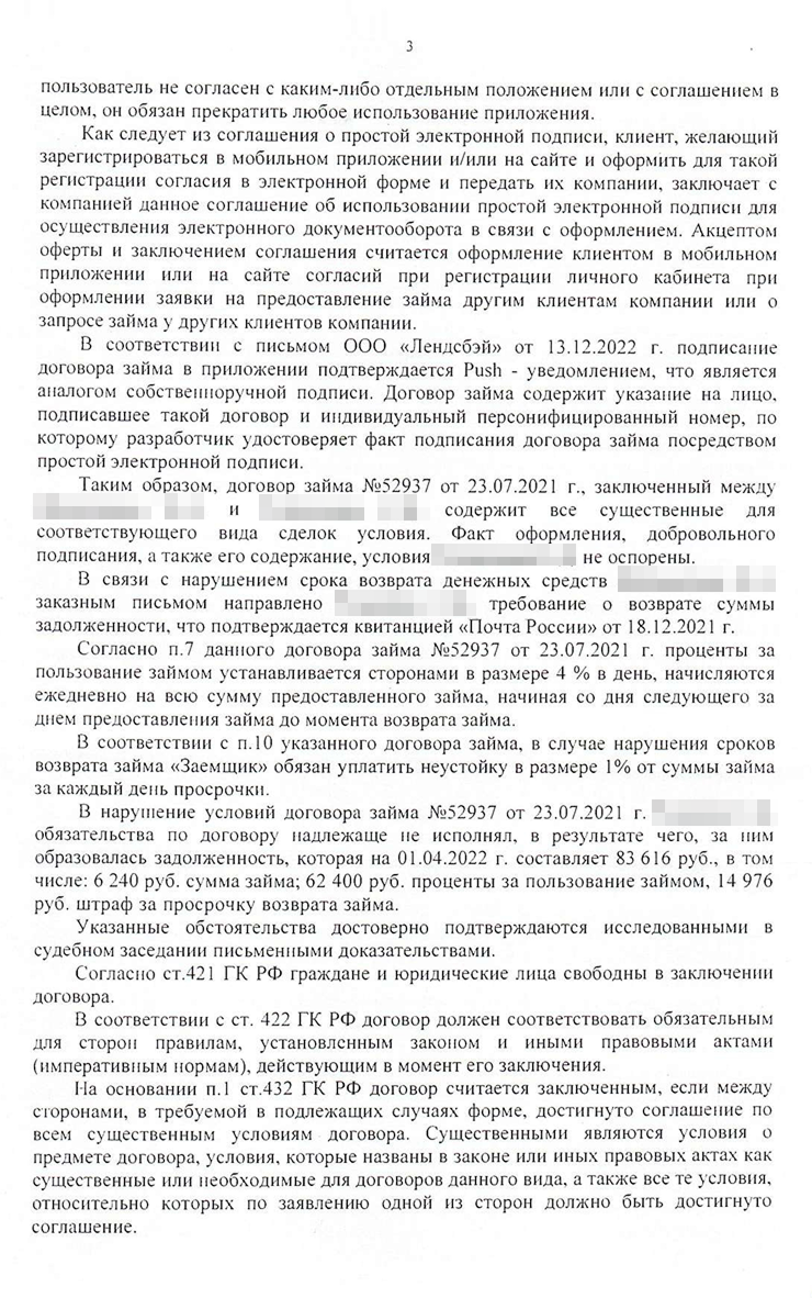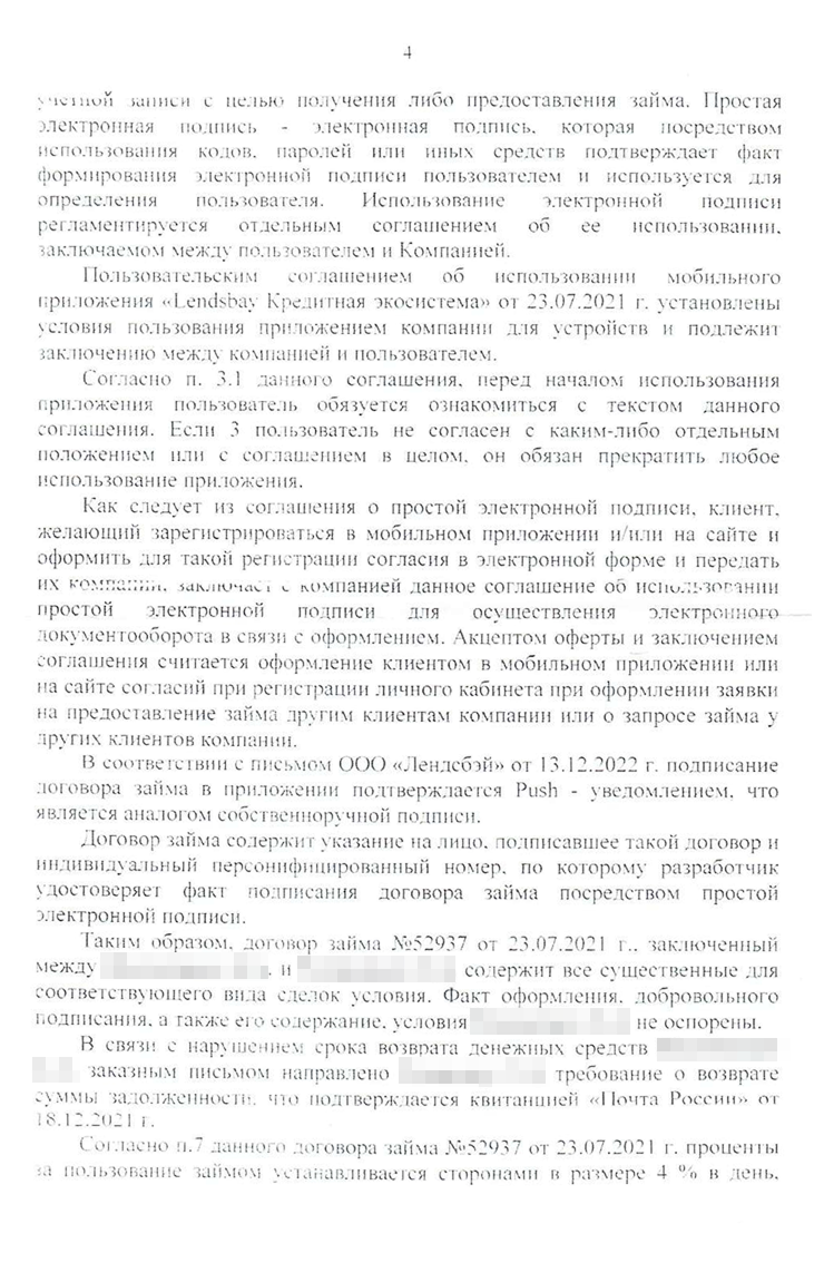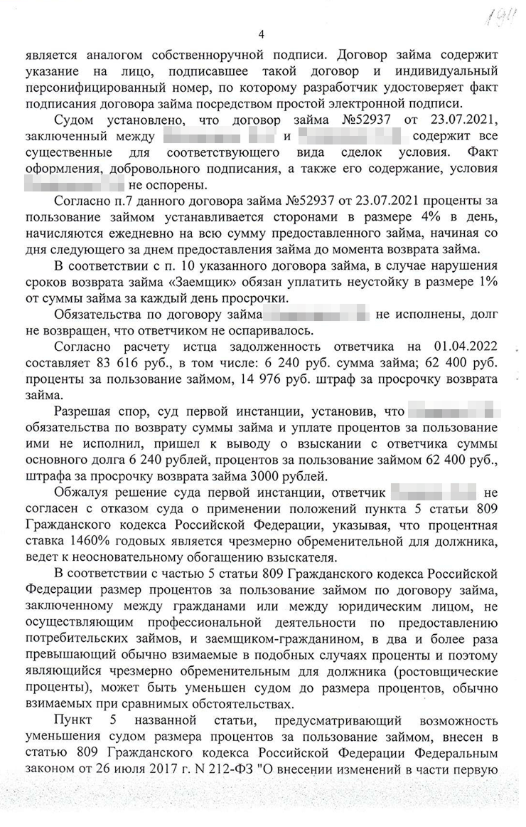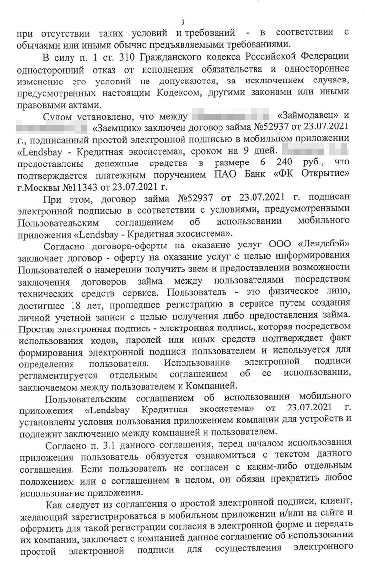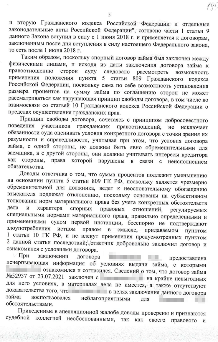 Первый аргумент — суд не мог применять закон об МФО к отношениям между гражданами, даже если они заключали договор через интернет. Второй — по закону суд должен был дать мотивированный ответ по всем доводам, изложенным в жалобе. Но апелляция при вынесении решения не оценила некоторые наши доводы.