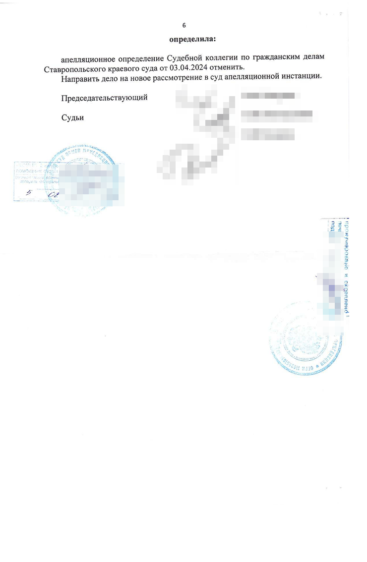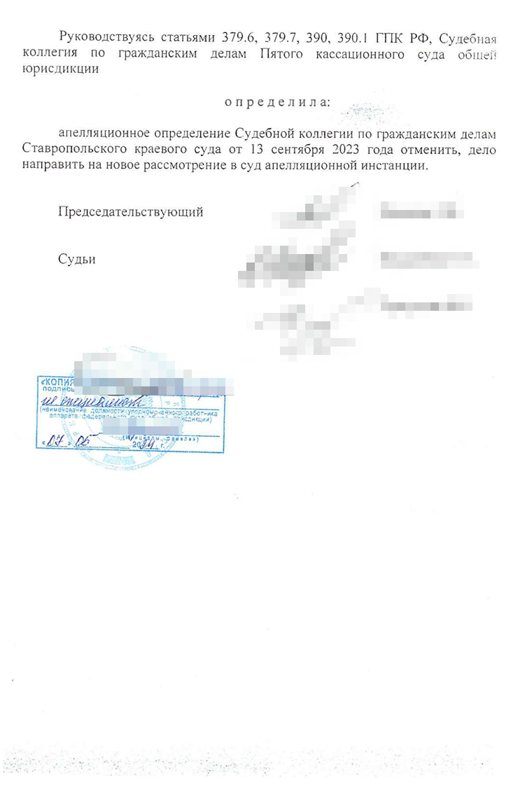 В кассационном суде, как и в апелляции, дела рассматривает коллегия из трех судей. Жалобу Кирилла удовлетворили 31 января 2024 года — апелляционное определение отменили, дело передали в Ставропольский краевой суд на пересмотр.
