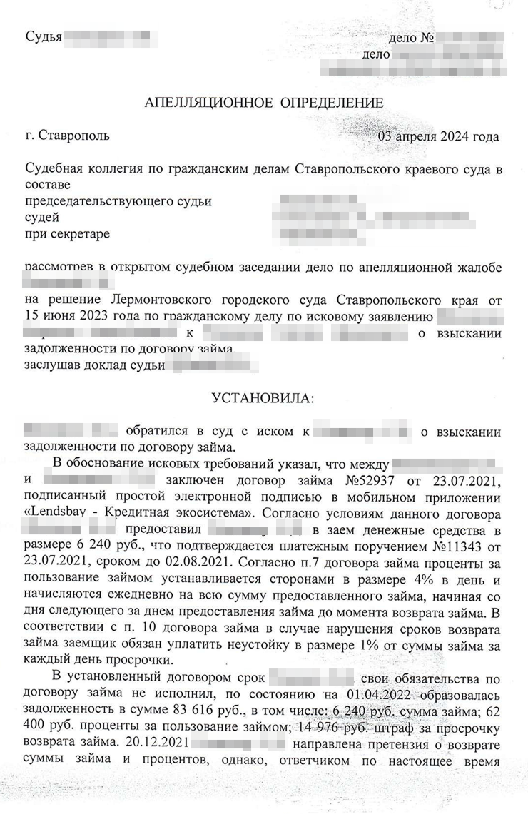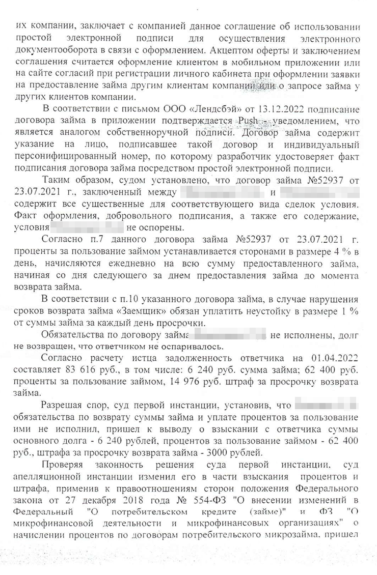Кейс юриста: клиент занял деньги под 1 460% годовых, мы прошли 6 инстанций и сократили долг