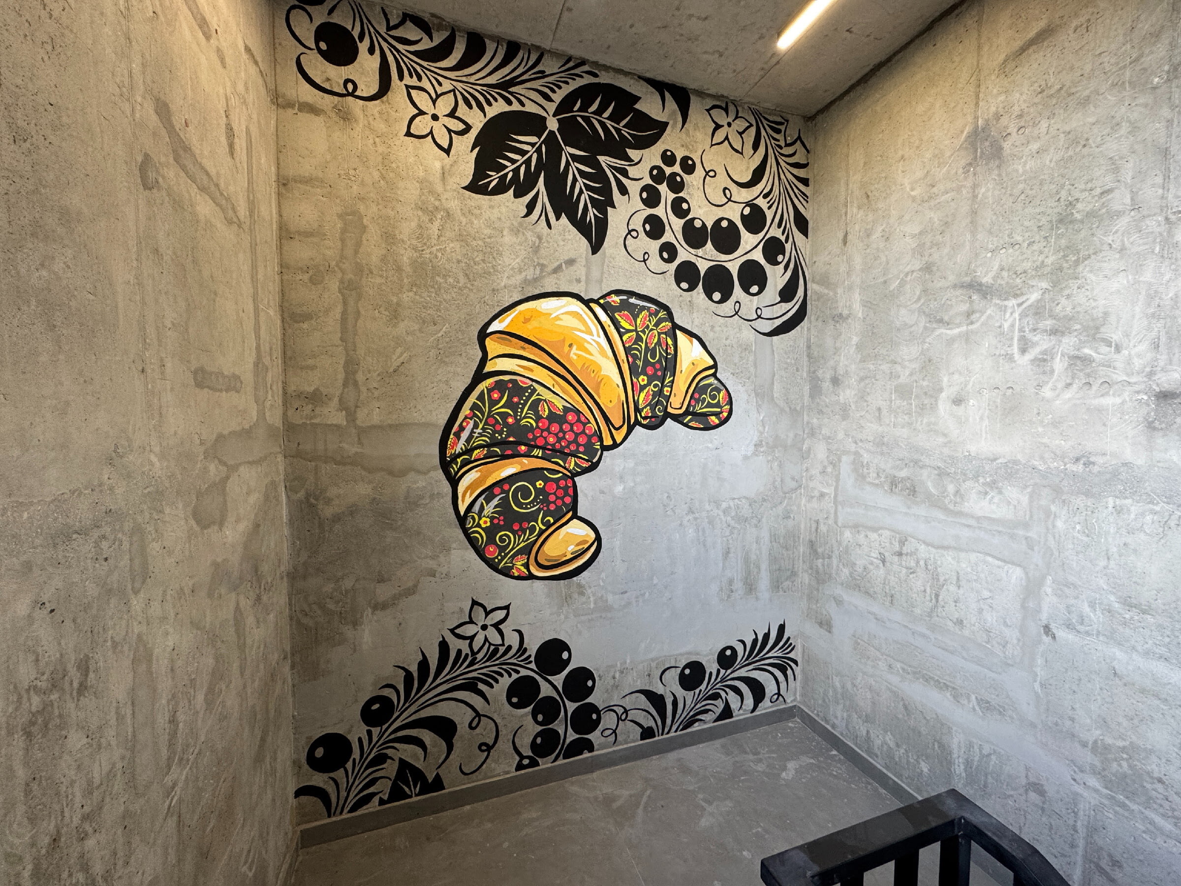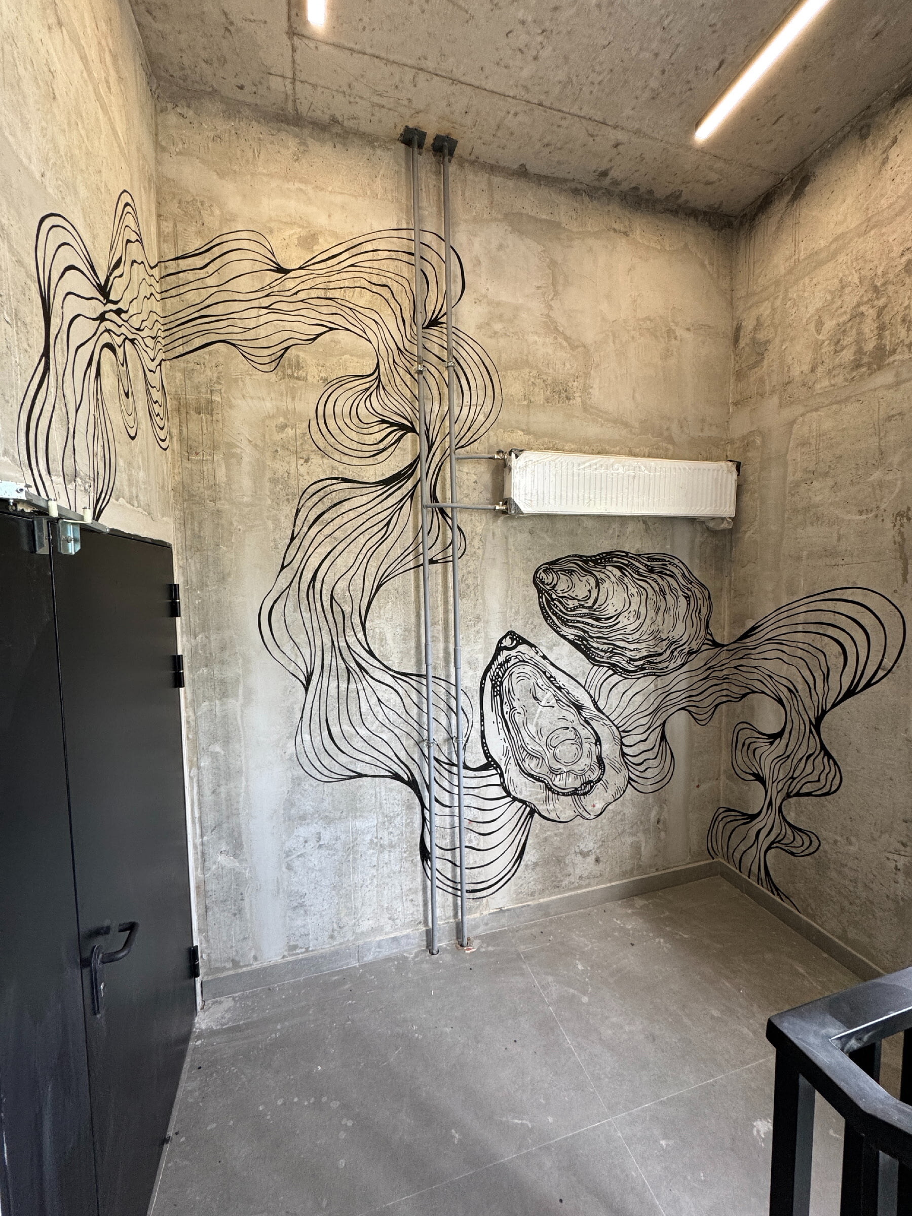 Результат: изображения узнаются мгновенно, поддерживают тематику объекта и гармонируют с архитектурой. Пространство не перегружено — графика работает как акцент, а не сплошное покрытие.