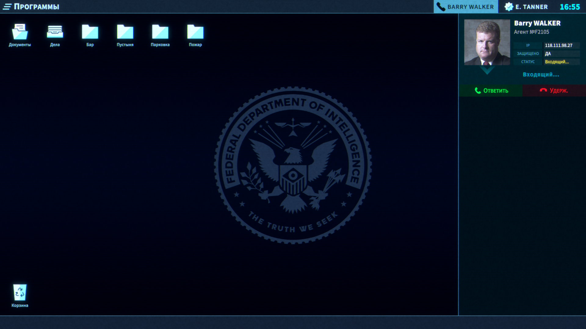 Вы играете за нового сотрудника ФДИ (Федерального департамента разведки) по имени Эван Таннер. Ваша работа — сидеть за терминалом и помогать полевым агентам раскрывать преступления, взламывать данные и координировать действия. Мир игры — это современный триллер с элементами конспирологии, где за обычными расследованиями скрываются серьезные заговоры. Персонажи появляются перед вами через экраны видеосвязи, файлы досье и аудиозаписи. Вы никогда не покидаете свой кабинет, но чувствуете себя частью больших событий, потому что от ваших подсказок зависят жизни агентов «в поле».