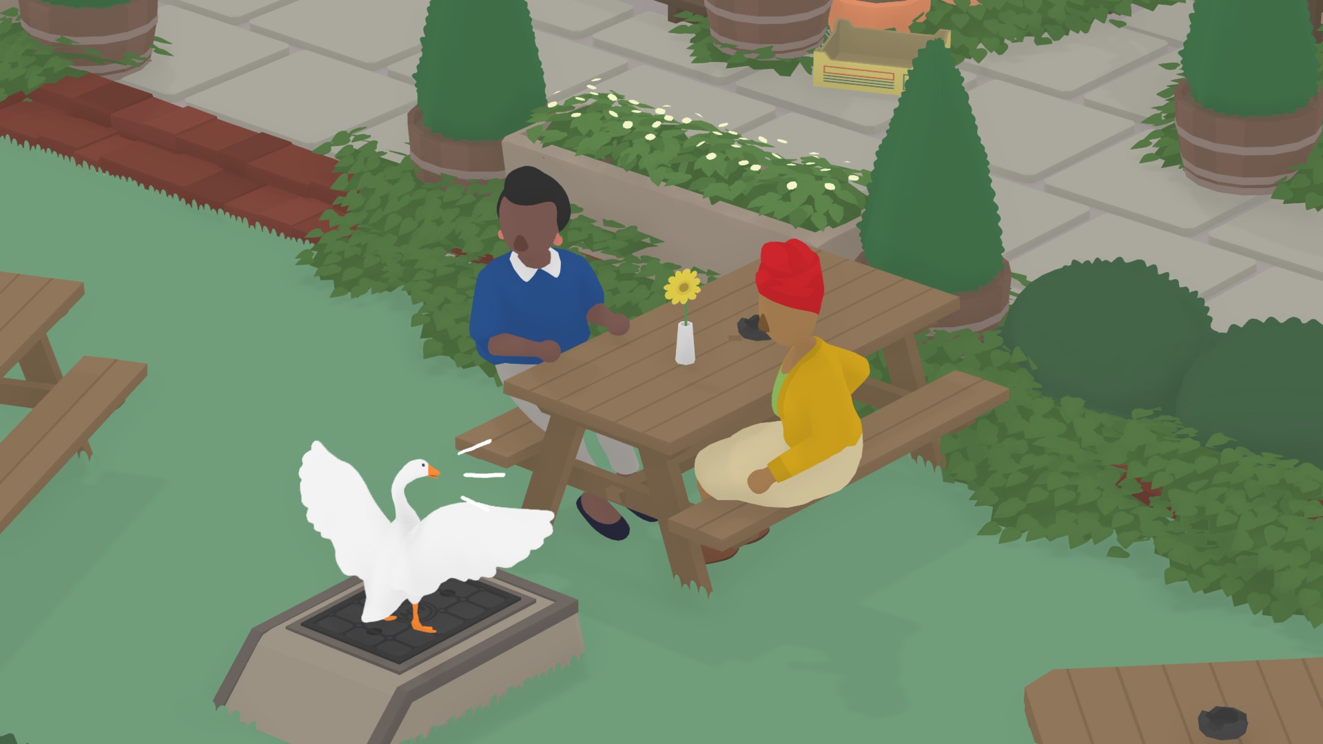 Небольшая мирная деревня, жители занимаются своими повседневными делами. Вы же играете за гуся, который вносит хаос в их размеренную жизнь.