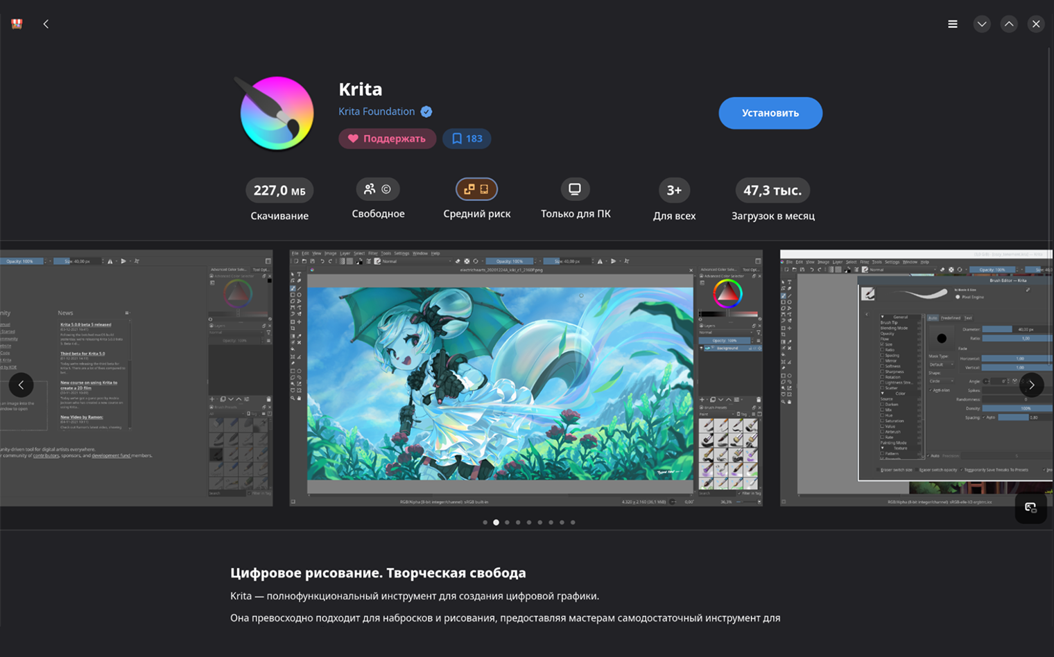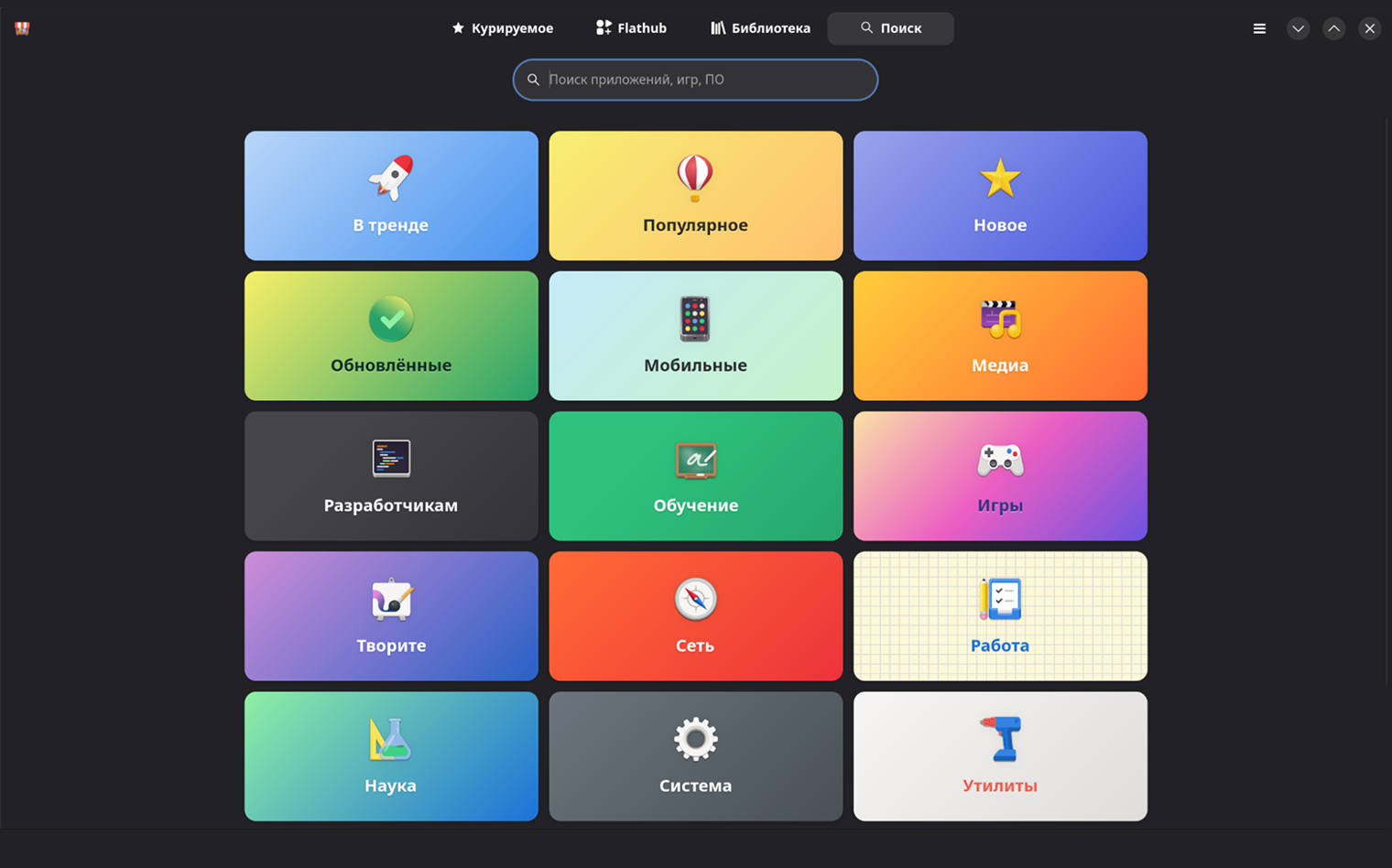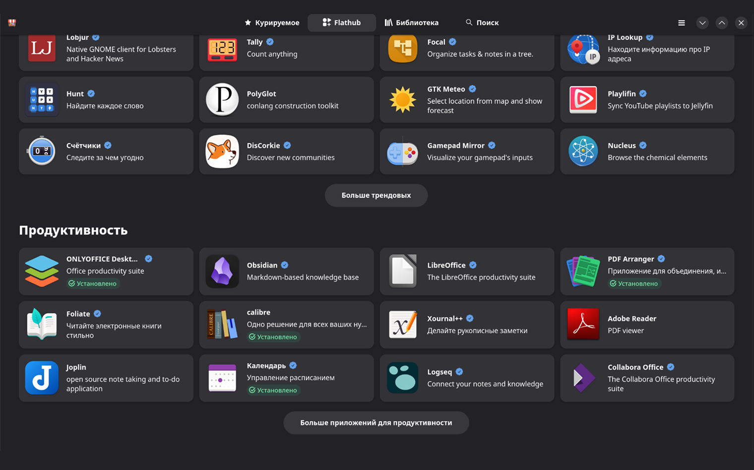 Bazaar курируется отдельной командой энтузиастов, а в каталог добавляются все программы формата Flatpak. Среди них есть соцсеть Discord, мессенджер Telegram и программа для записи OBS Video.