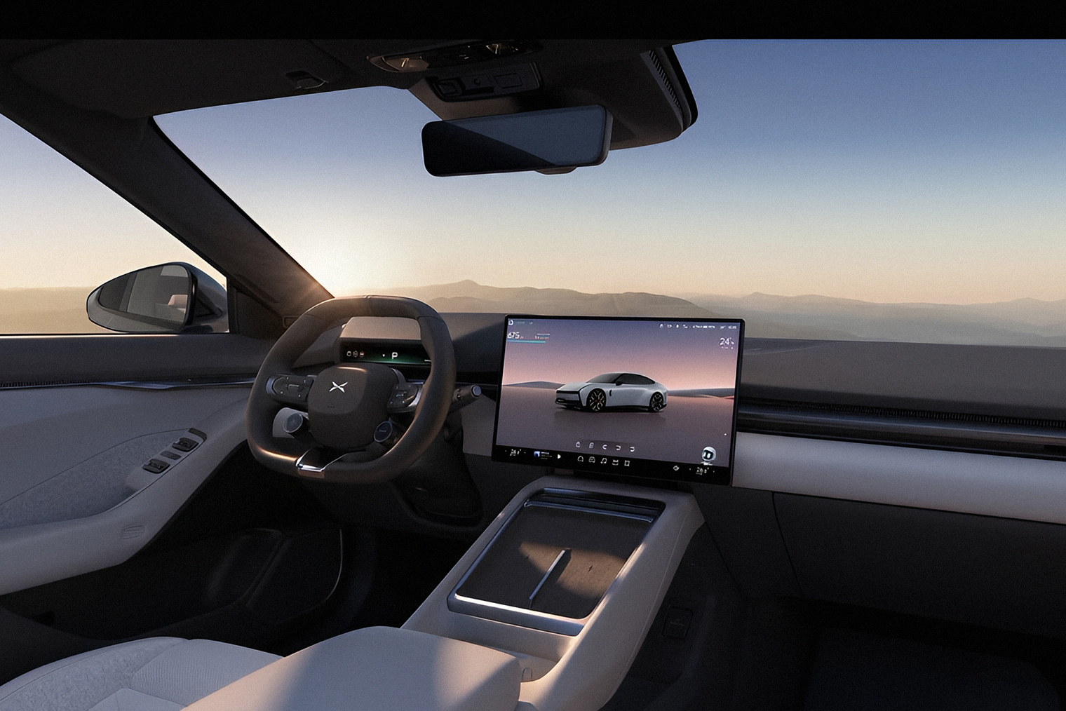 Панель приборов водителя — это проекция на лобовое стекло виртуальной диагональю 87 дюймов с функцией дополненной реальности. Ассистенты водителя получают данные от камер — лидара в машине нет.