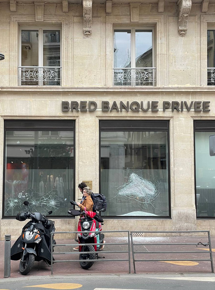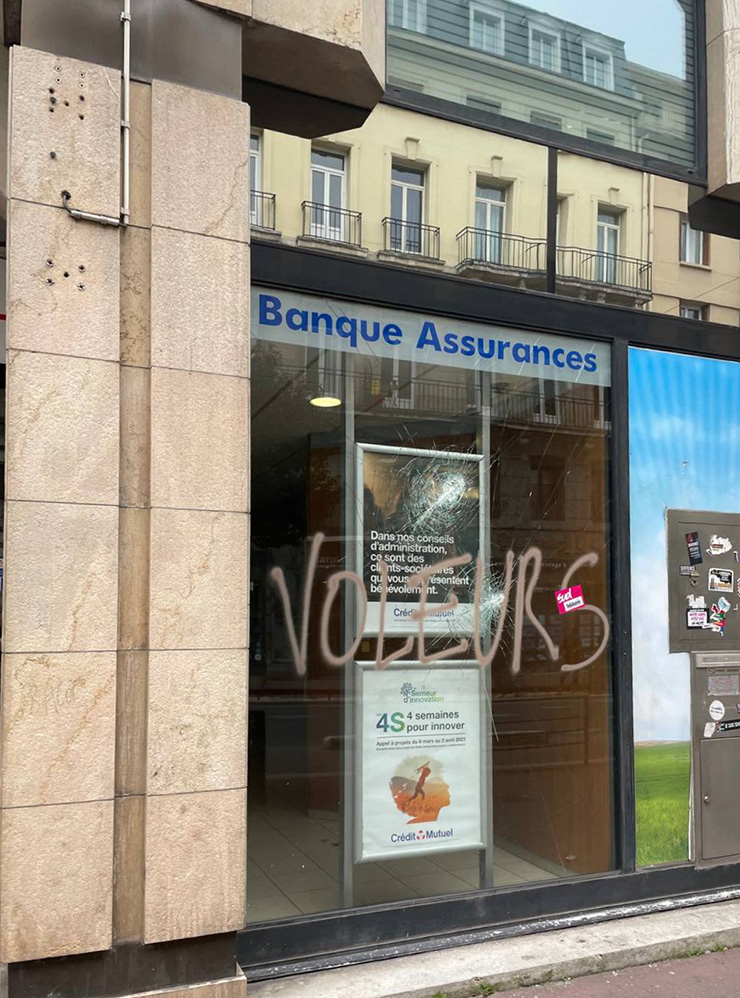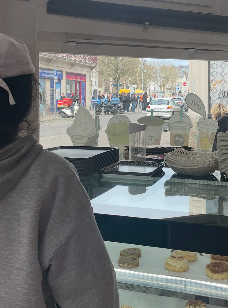 Кроме мусорщиков тогда бастовали все кому не лень. Я прекрасно помню конец марта, когда пошла покупать себе пончик в центре Руана, а в городе начали орудовать разбивальщики — les casseurs. Так называют тех, кто крушит и ломает все вокруг во время протестов. Продавщица быстро закрыла дверь, выключила свет, сказала мне и другой девушке спрятаться за ней и не вылезать. Я успела сфотографировать происходящее, но очень испугалась.