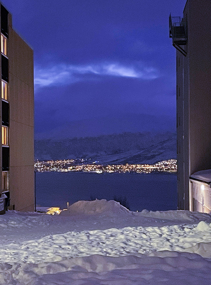 С ноября по апрель погода в Тромсё — обнять и плакать. За окном полярная ночь и постоянно темно, мороз −15 °C сменяется снегопадом, затем дождем и новой волной морозов. Это мое самое нелюбимое время — стараюсь по возможности не выходить на улицу, потому что скользко, мерзко и опасно. Зимой 2025 я сильно повредила руку из-за падения, хотя моя врожденная ниндзя-прошивка передвижения по льду и снегу редко дает сбой.