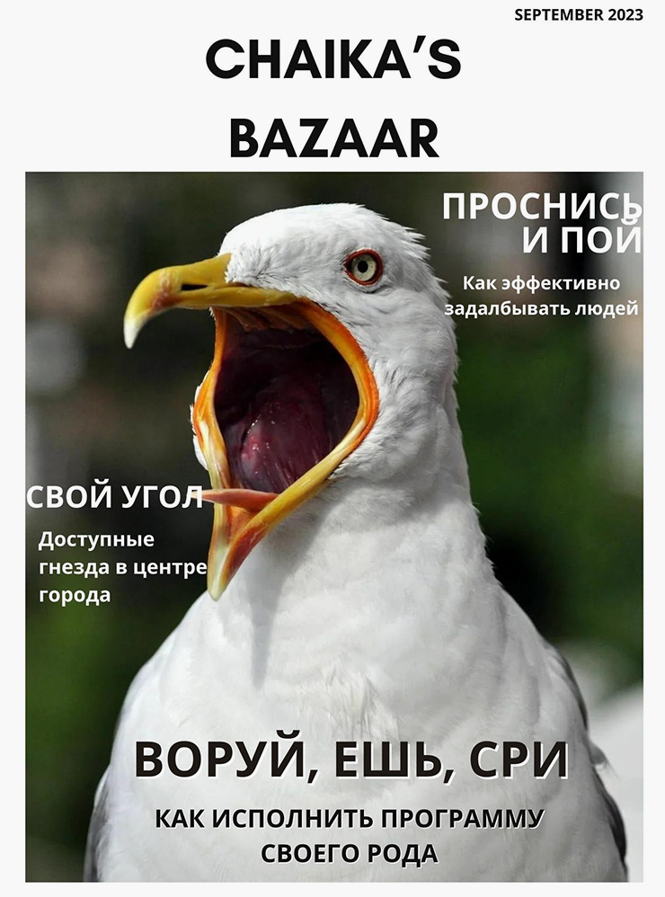 Самое запоминающееся нападение чайки случилось, когда я выгуливала собаку подруги недалеко от школы: противная птица решила устроить гнездо у тропинки, где постоянно ходят люди. Она спикировала на меня, когда я записывала аудио подруге — этот момент увековечен в истории. Я отогнала ее популярным в русском языке заклинанием «Ахтыжпошлаотсюда!» и убралась подобру-поздорову вместе с озадаченным псом. С тех пор не люблю чаек и держусь от них подальше.