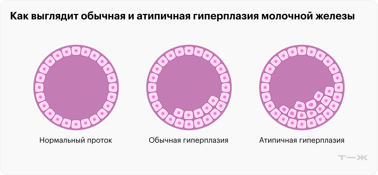 Что это и почему возникает. Гиперплазия — увеличение количества клеток, выстилающих дольки или протоки молочной железы. Выделяют два ее основных типа: