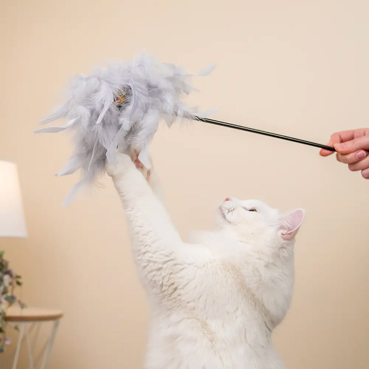 Дразнилка — самая популярная игрушка для кошек. Выглядит она так: предмет крепится к веревке, а веревка — к деревянной или пластиковой палке. Хозяин дразнит кошку игрушкой, та гоняется за ней и ловит «добычу».