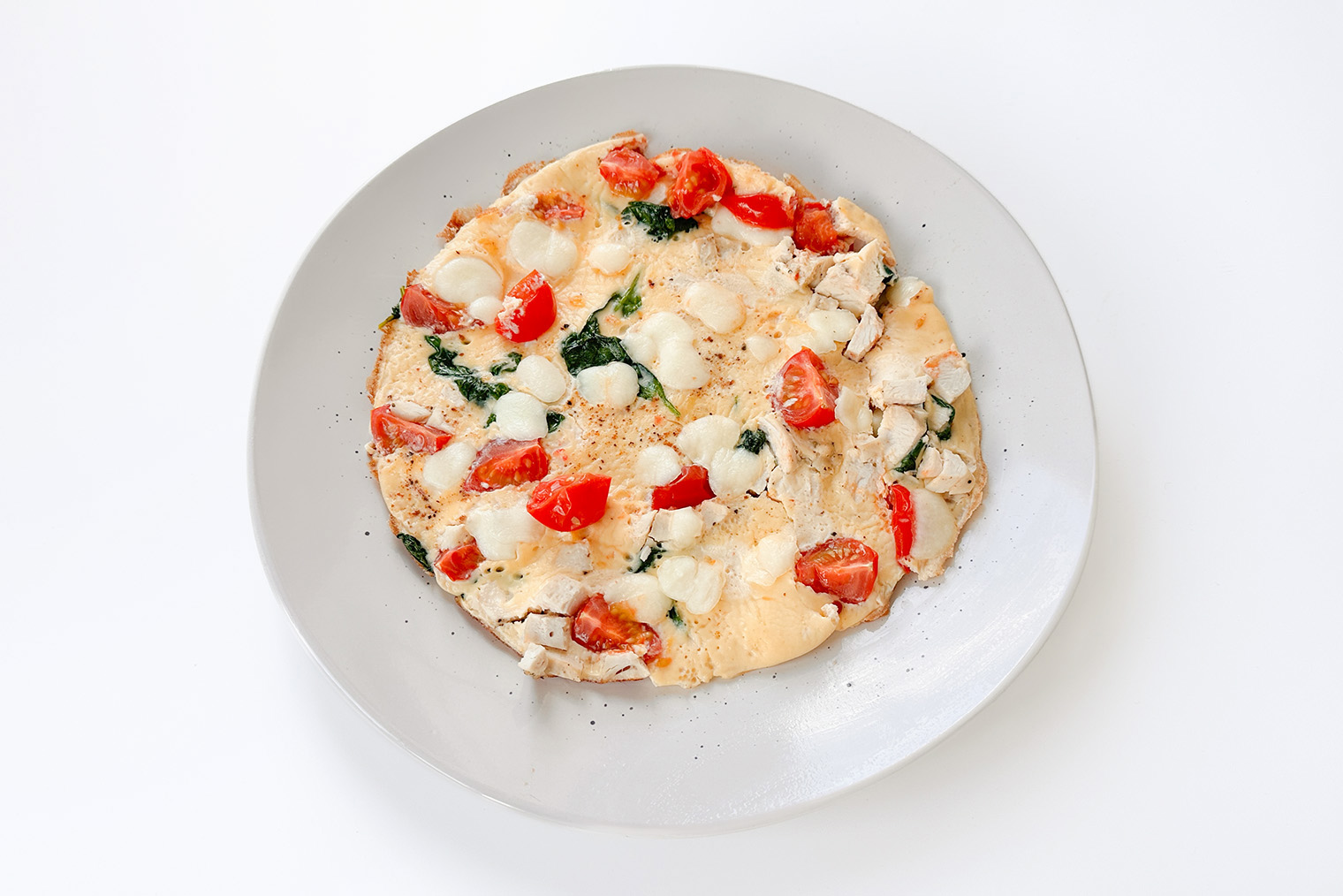 Омлет с курицей, шпинатом, черри и моцареллой