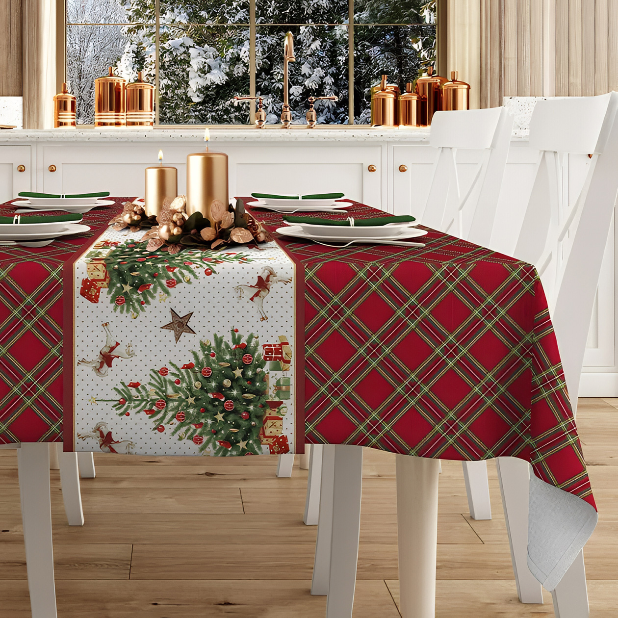 Удобных и понятных каталогов на Ozon и «Яндекс Маркете», к сожалению, нет, но по поиску можно найти новогодние скатерти, бокалы, предметы для сервировки стола, праздничное освещение, подарочные коробки в виде елочек, игрушки и венки.