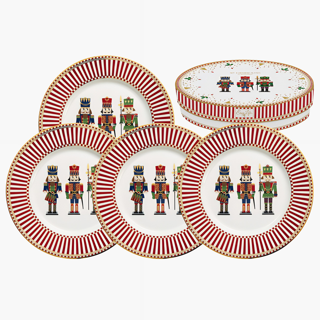 В домашнем отделе интернет-магазина есть большой выбор недорогого новогоднего декора. Стилистика украшений в основном классическая — красно-зеленая, с принтами из колокольчиков и елочек. Если изучить каталог более пристально, можно найти забавные игрушки в виде джойстиков и кед, тарелки с очаровательными принтами зверят и рюмки на ножке в форме дореволюционных солдатиков.