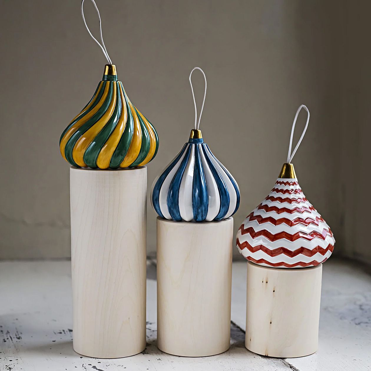 Кратко: минималистичные елочные игрушки из фарфора