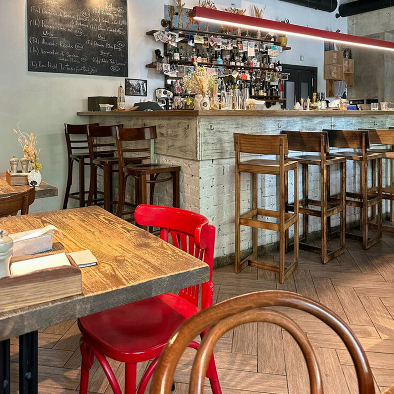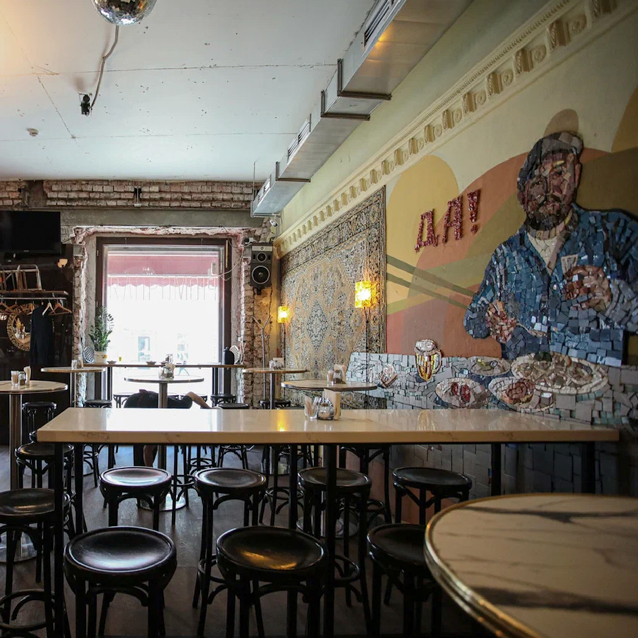 Слегка старомодный гастропаб с нарочито потертым интерьером, который особенно любят жители района. Внутри — расслабленная атмосфера и короткое меню: акцент на закуски вроде оливок, сыров и паштетов, тартары, горячие блюда с оглядкой на израильскую кухню и десерты на любой вкус.