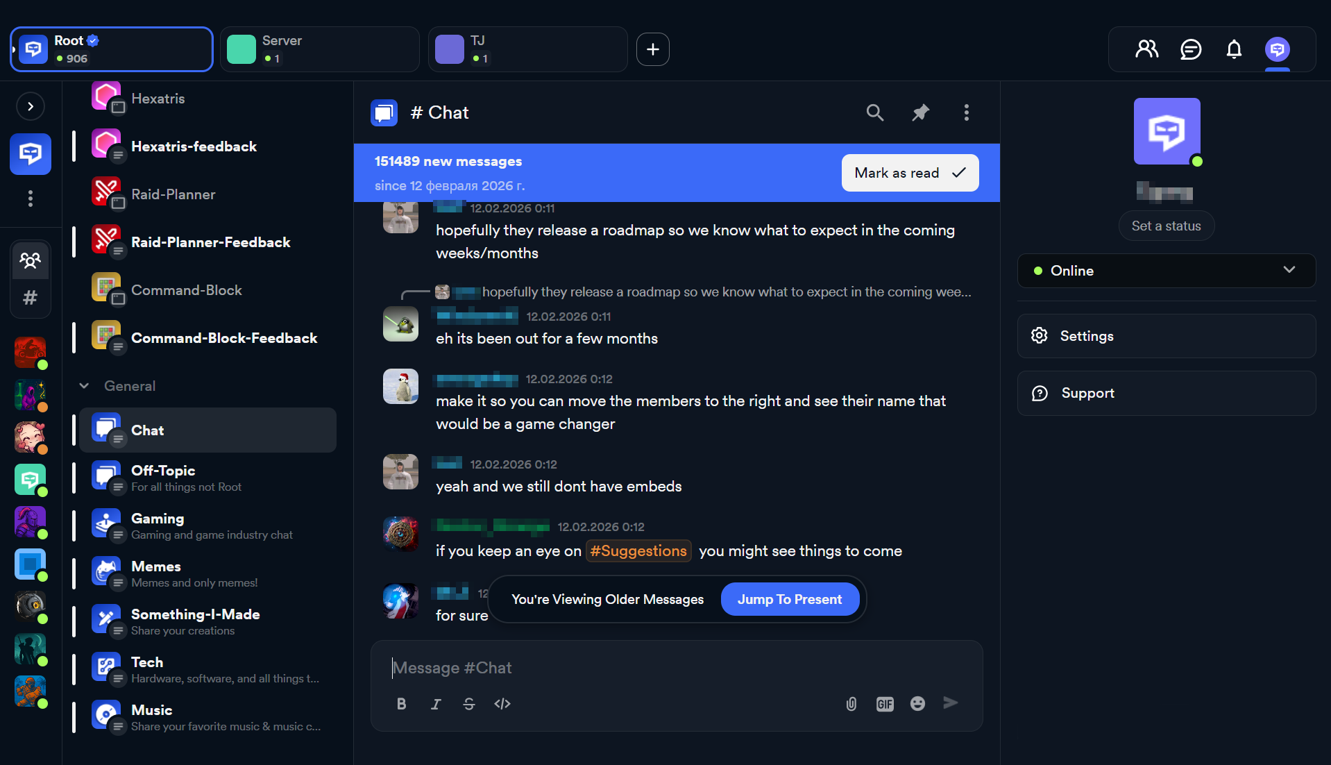 Сейчас Root — самый интересный аналог Discord. Он без проблем работает в России, обеспечивает хорошую связь и неплохо выглядит. А еще это единственная программа в списке, позволяющая перенести сервер из Discord со всеми каналами, но без содержания и ботов.