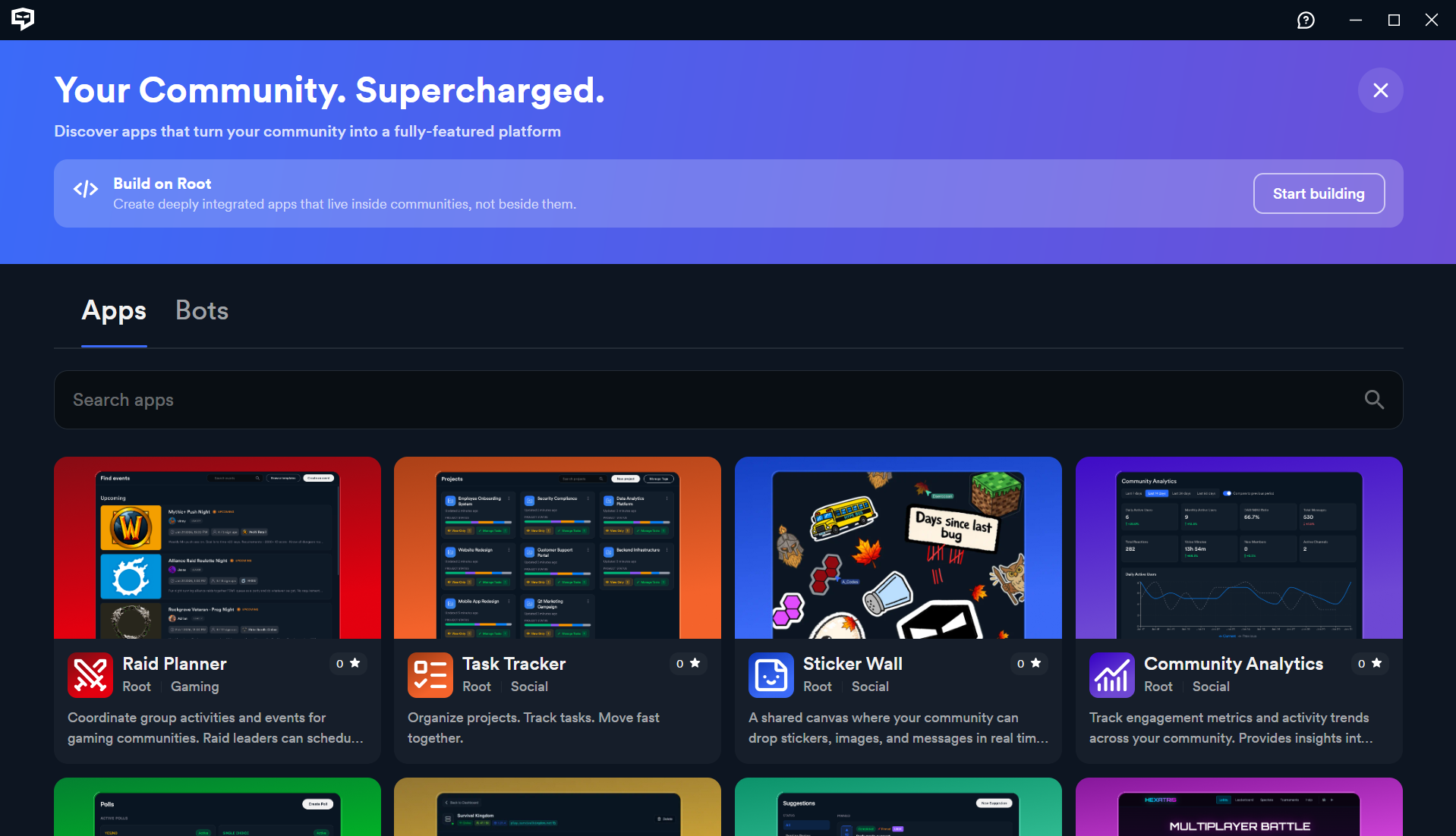 Во многом приложение уже сейчас повторяет основные функции главного конкурента: удобный интерфейс, кроссплатформенность, загрузка файлов и гифок до 100 Мб, поддержка видеозвонков, трансляций и демонстрации экрана. Недавно даже добавили мини-приложения, позволяющие отслеживать расписание рейдов, следить за трекером задач и видеть статистику сервера. Пока мини-приложения находятся в состоянии беты — установить на свой сервер можно только программы от самой Root.