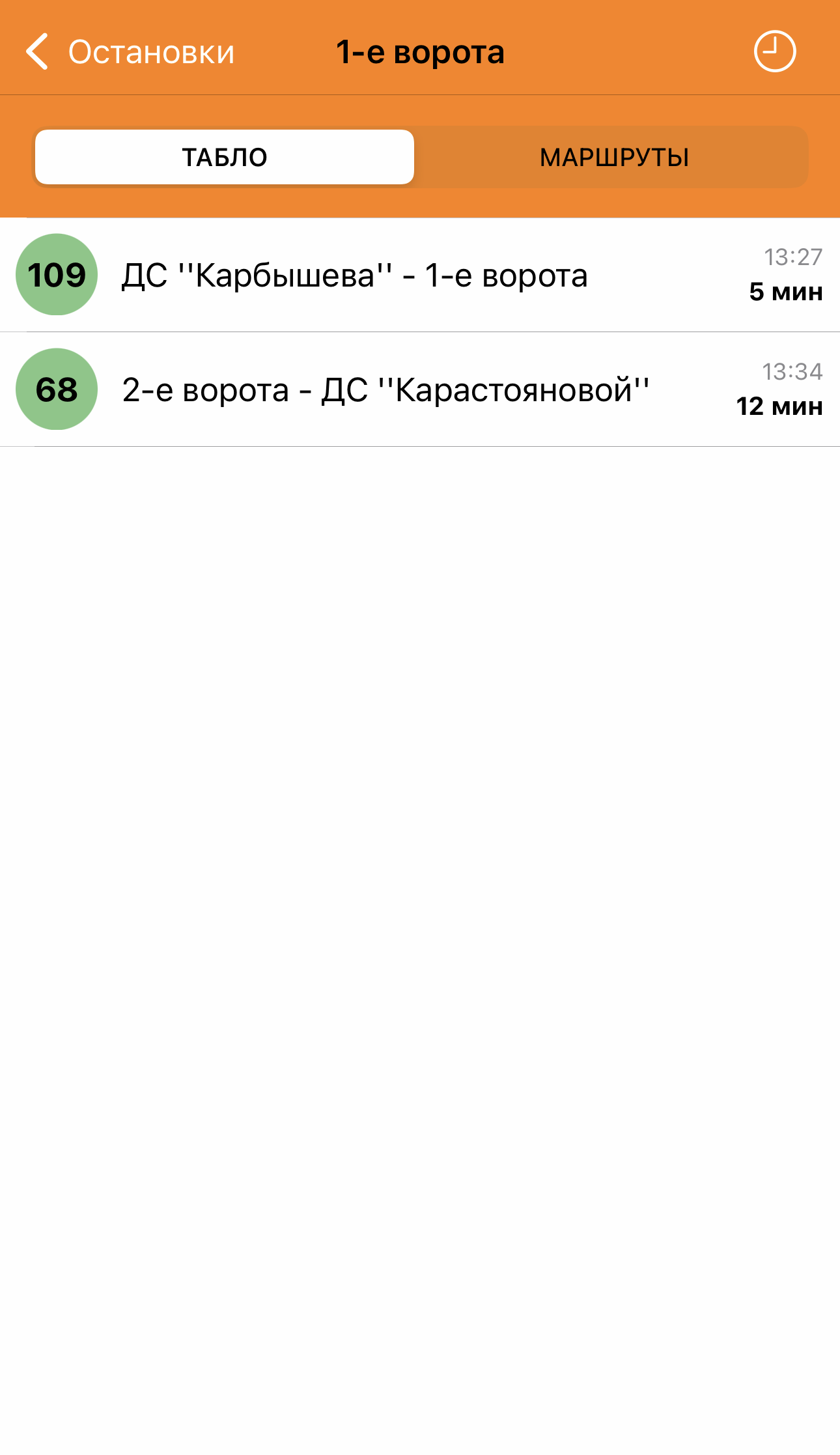 Как пользоваться. Приложение — это таблица с номерами маршрутов. Под номером указывают, сколько автобусов сейчас на линии. Если выбрать конкретный маршрут — откроется список с остановками и временем, когда прибудет автобус.