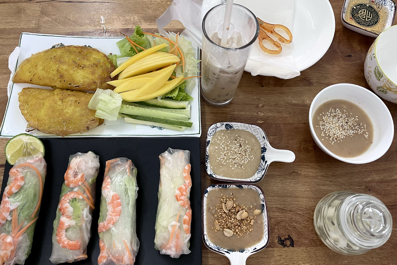 Во Вьетнаме развитый общепит, так что голодать точно не придется. Здесь есть выбор на любой бюджет. Самые дешевые бань ми — сэндвичи с начинками — продают по 20 000 VND (61 ₽). Спринг-роллы с морепродуктами обойдутся в 40 000 VND (127 ₽), полноценный обед — в 65 000 VND (200 ₽). А на 100 000 VND (309 ₽) можно вдоволь наесться не только вьетнамскими блюдами, но и продегустировать иностранную кухню. Расскажу о местных блюдах и напитках, которые мне запомнились.