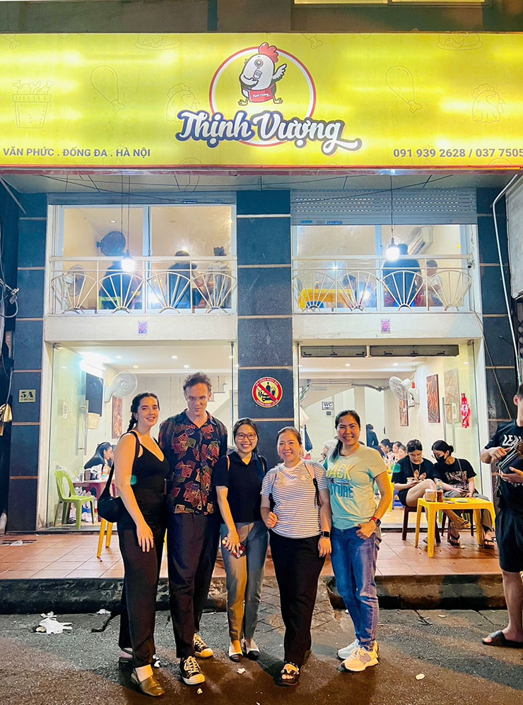 Жареная курица. Однажды мы с коллегами отправились на небольшой корпоратив в честь начала учебного года и нашли место, где подают лучшую жареную курочку в Ханое. Хотя место показалось специфическим — здание было обшарпанным, а у столов стояли маленькие стулья, — качеством блюд мы остались довольны.