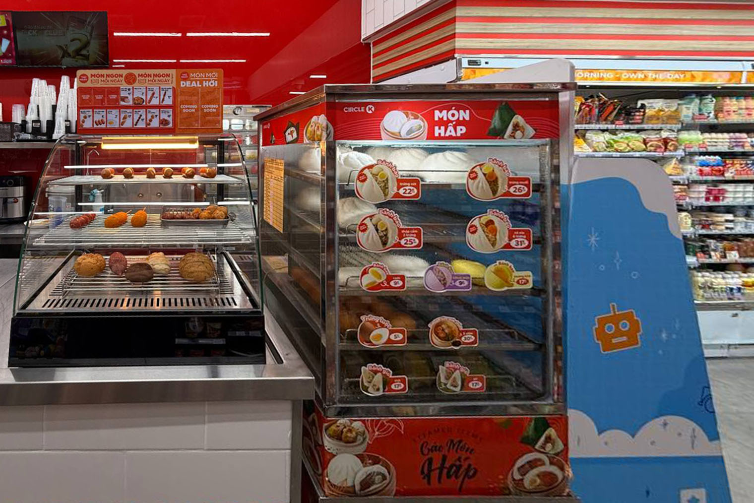 Сеть Circle K позиционирует себя как магазин и кафе с недорогими перекусами. Продавцы готовят несложные блюда: бань ми, лапшу с сосисками и яйцом. Еще там можно самостоятельно заварить рамен, взять теплую рисовую булочку с начинкой и быстро перекусить. Средний чек за полноценный обед получается не выше 60 000 VND (185 ₽). В Circle K широкий выбор онигири — рисовых треугольников с начинкой, которые отлично подходят для быстрого и полезного перекуса. А на кассе продают кофе и другие напитки.