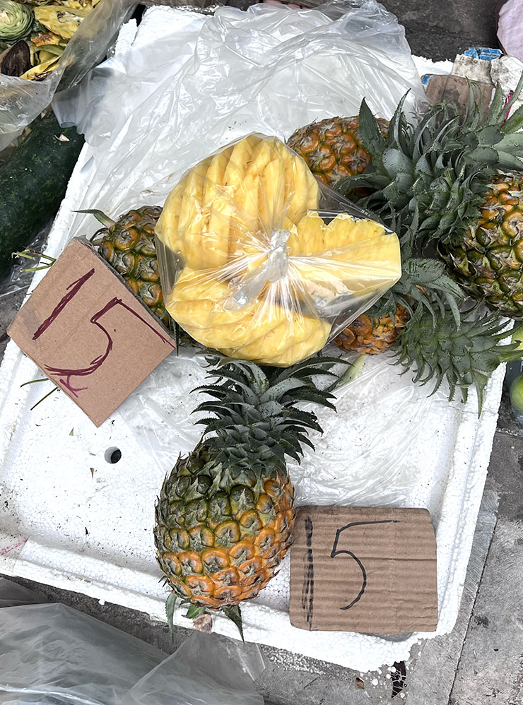 Со временем я выработала для себя правило: мясо и морепродукты покупаю в магазинах, где строгие условия хранения, а фрукты и овощи — на уличных лотках и рынках. Все из-за разницы в цене: например, один ананас стоит на рынке 15 000 VND (47 ₽), а в магазине — 23 000 VND (73 ₽). Аналогичная разница в цене других фруктов и овощей.