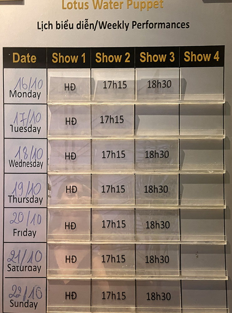 Спектакль идет на вьетнамском, но на огромных экранах транслируют перевод на английский и французский языки. Каждую сцену сопровождает вьетнамская музыка, сидят артисты и играют на традиционных инструментах. Такое зрелище лучше не пропускать — для спектакля на воде стоит выделить целый вечер.
