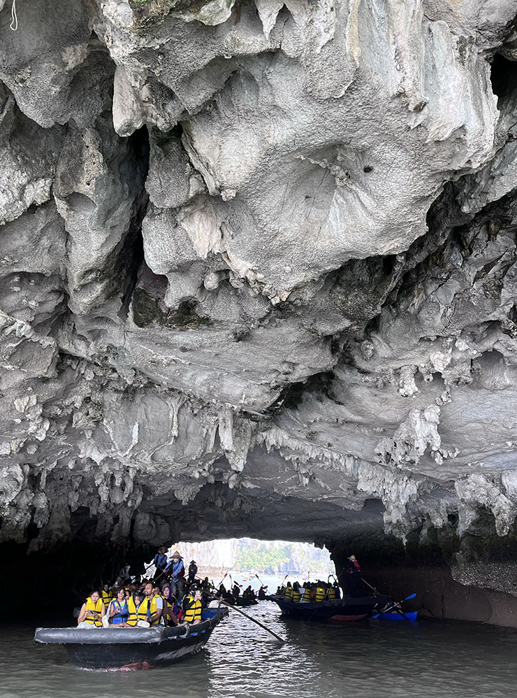 Например, в апреле 2025 года я забронировала тур в бухту Халонг через Klook. Однодневная экскурсия стоила 1 115 000 VND (3 445 ₽) на человека. Из Ханоя нас забрал автобус и довез до бухты, где нашу команду ожидала комфортабельная яхта с готовым обедом. Позже мы отправились исследовать пещеры, кататься на лодке по узкому ущелью и смотреть остров Германа Титова. Еще нам показали жемчужную ферму, рассказали, как выращивают жемчуг и как отличить настоящий от искусственного.