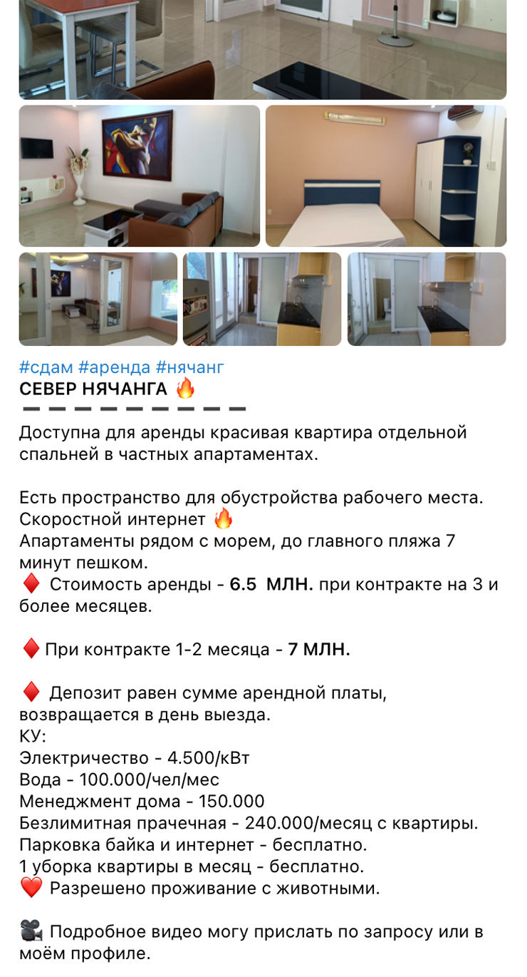 Найти жилье во Вьетнаме легко. Варианты публикуют в группах в «Фейсбуке»* и «Телеграме», в общих чатах по стране и в отдельных по конкретным городам. Например, в столице это «Ханой форум — Вьетнам». Также знаю случаи, когда люди арендовали квартиры через «Букинг» или Airbnb, искали варианты с бесплатной отменой, а потом напрямую договаривались с хозяевами о долгосрочной аренде.