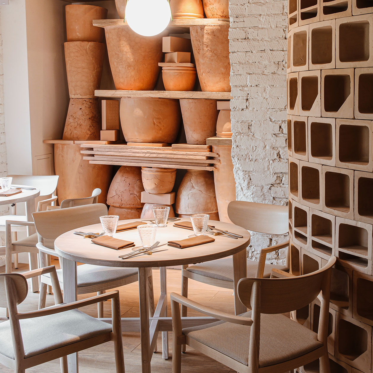 Как выглядит. В переводе с греческого moró означает «малыш». Назвать миниатюрным новый ресторан Глена Баллиса и Аркадия Новикова нельзя, но место получилось уютным: среди выбеленных кирпичных стен и рядов глиняных горшков, под мягким теплым светом расставлены столы из светлого дерева.
